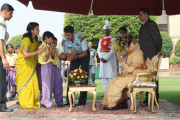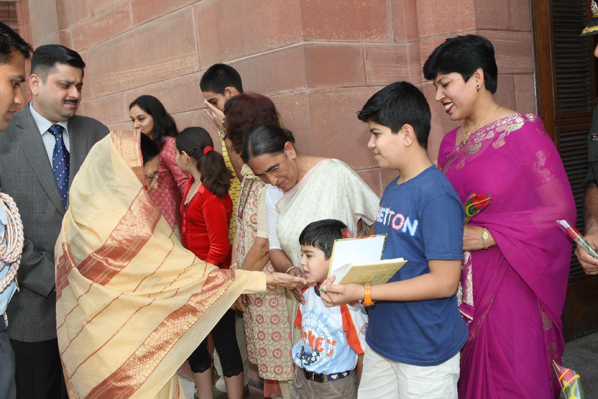 | Caption: | The President of India, Smt Pratibha Devisingh Patil receiving Diwali Greetings from various people's at Rashtrapati Bhavan in New Delhi on Oct 28, 2008 |