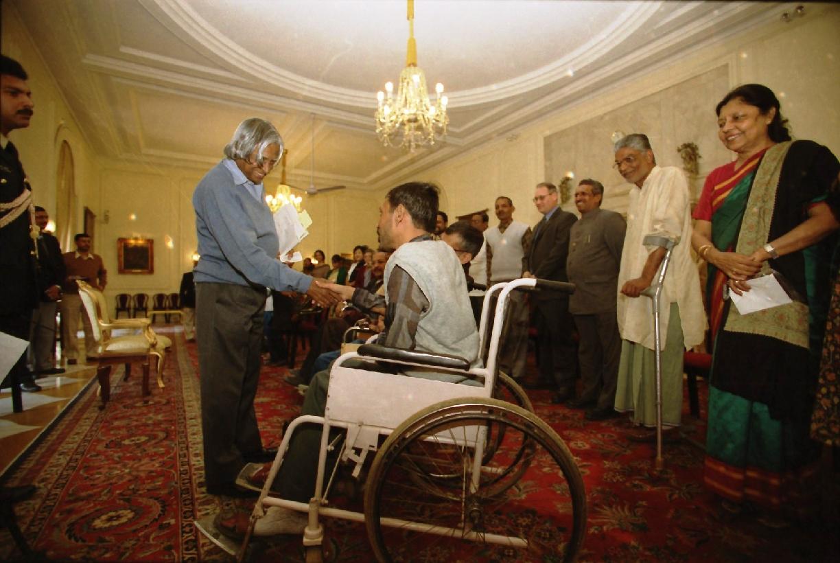 | Caption: | The Members Delegation from National Centre for Promotion of Employment for Disabled People calling on the President of India, Dr A P J Abdul Kalam on the eve of World Disability Day at the Yellow Drawing Room of Rashtrapati Bhavan in New Delhi on Dec 02, 2002 |
