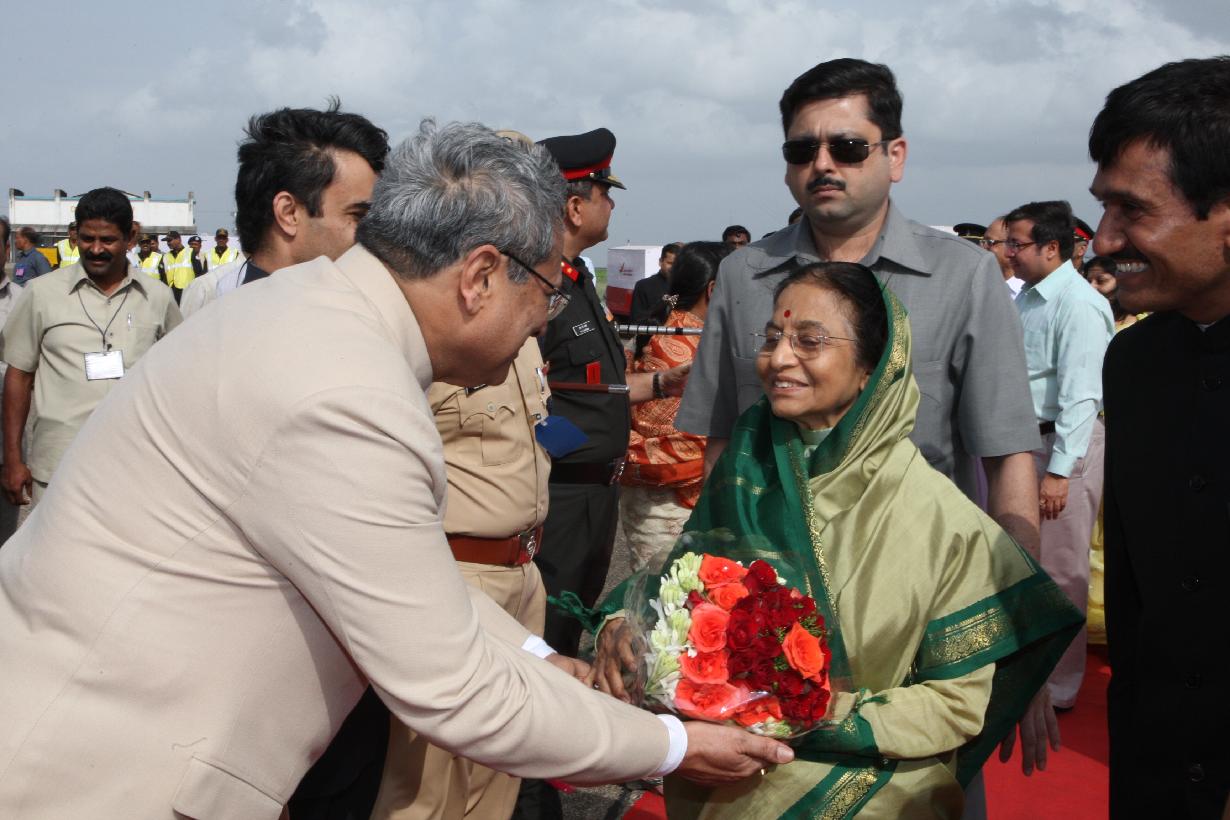 | Caption: | The President of India, Smt Pratibha Devisingh Patil before departure from Pune Airport in Maharashtra on July 06, 2008 |