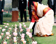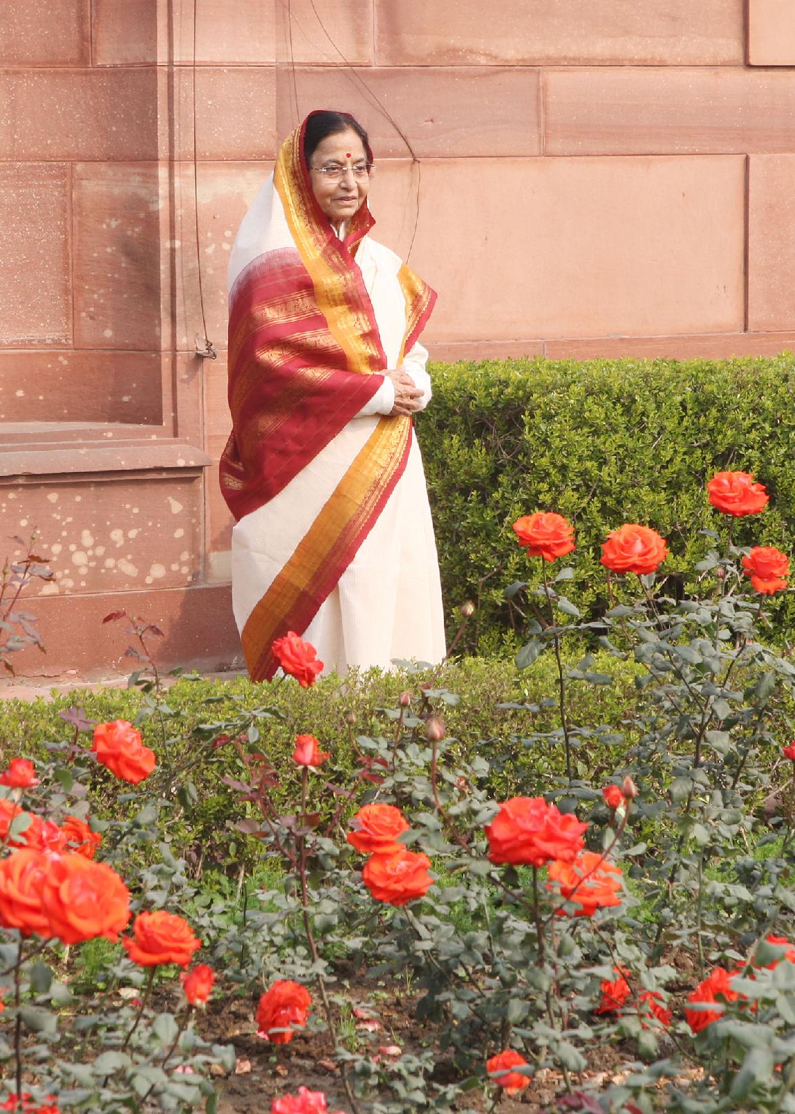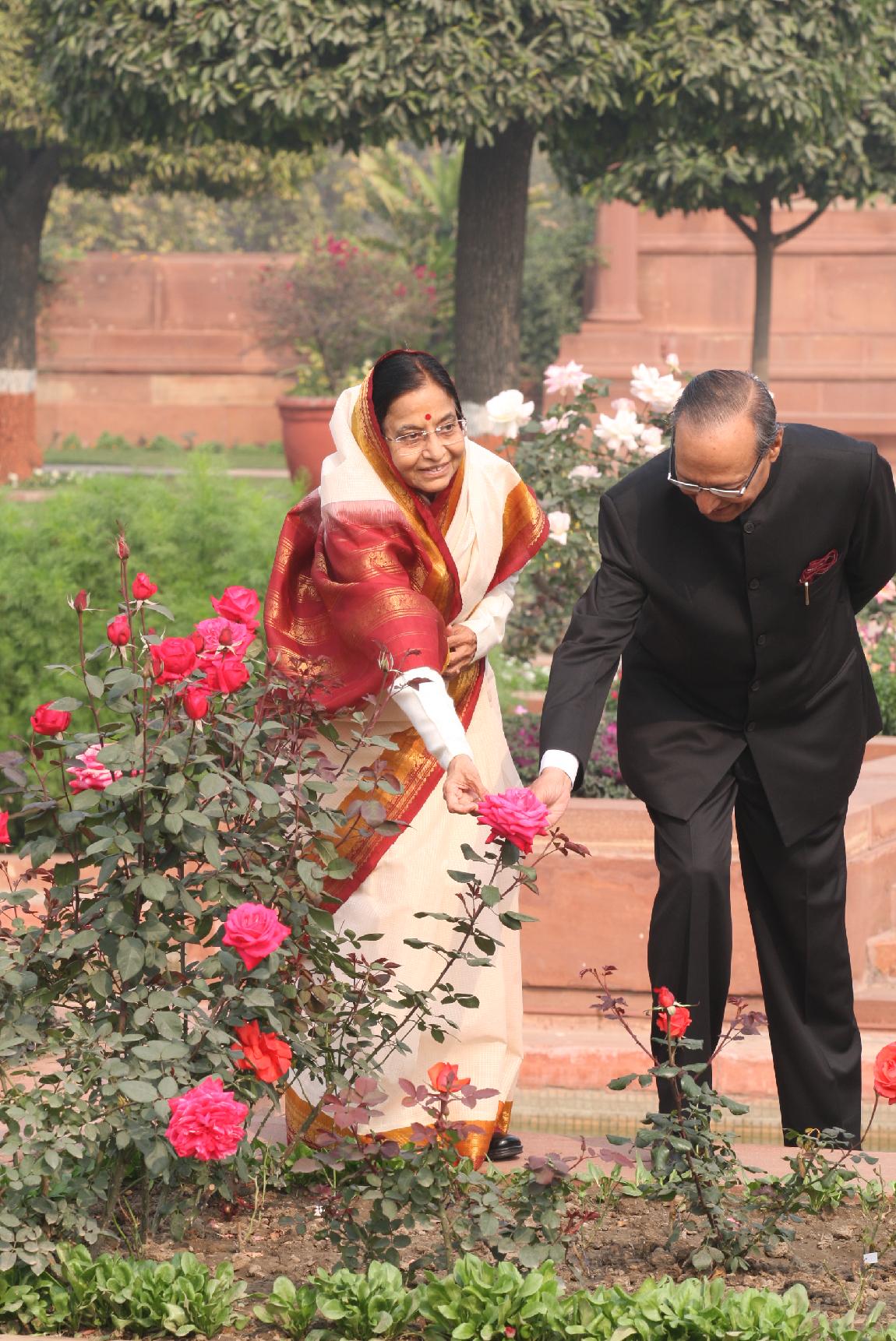 | Caption: | The President of India, Smt Pratibha Devisingh Patil with the Flower during a Press Preview of the Mughal Garden which will be opened for Public from 7th February at Mughal Garden of Rashtrapati Bhavan in New Delhi on Feb 06, 2009 |