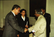 | Caption: | The Parliamentary Delegation from Turkey led by the Speaker of the Turkish Grand National Assembly, HE Mr Bluent Arinc with others calling on the President of India, Dr A P J Abdul Kalam at the Morning Room of Rashtrapati Bhavan in New Delhi on Dec 17, 2002 |