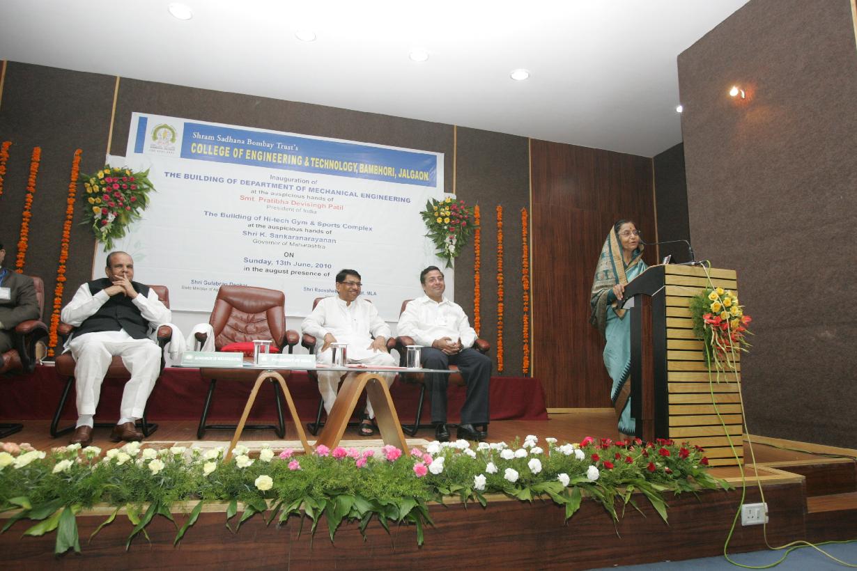 | Caption: | The President of India, Smt Pratibha Devisingh Patil visiting the SSBT'S College of Engineering & Technology at Jalgaon in Maharashtra on June 13, 2010 |