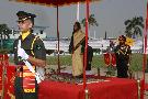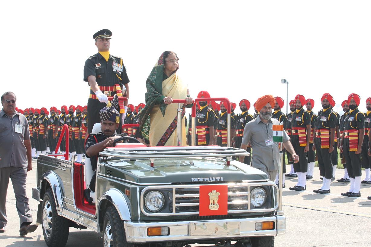 | Caption: | The President of India, Smt Pratibha Devisingh Patil inspecting Guard of Honour at Chandigarh Airport in Punjab on Oct 05, 2010 |