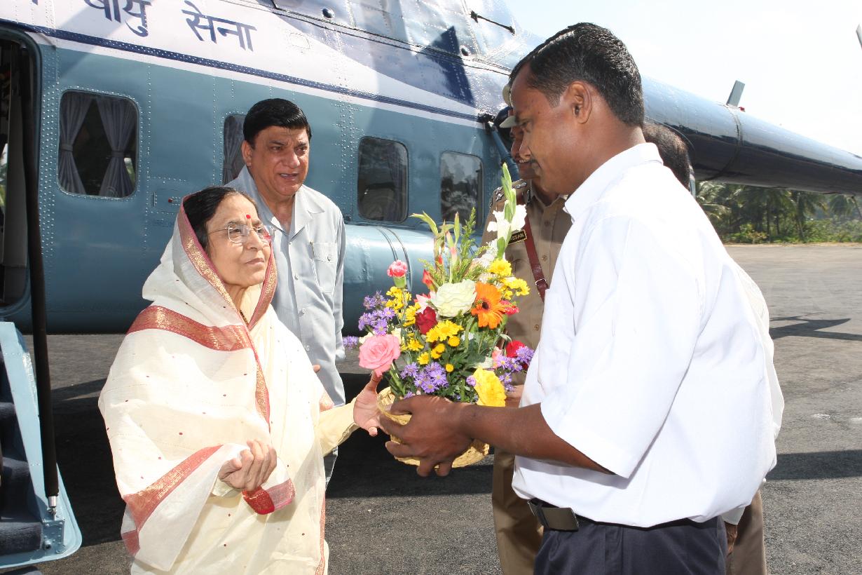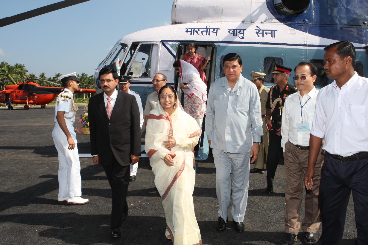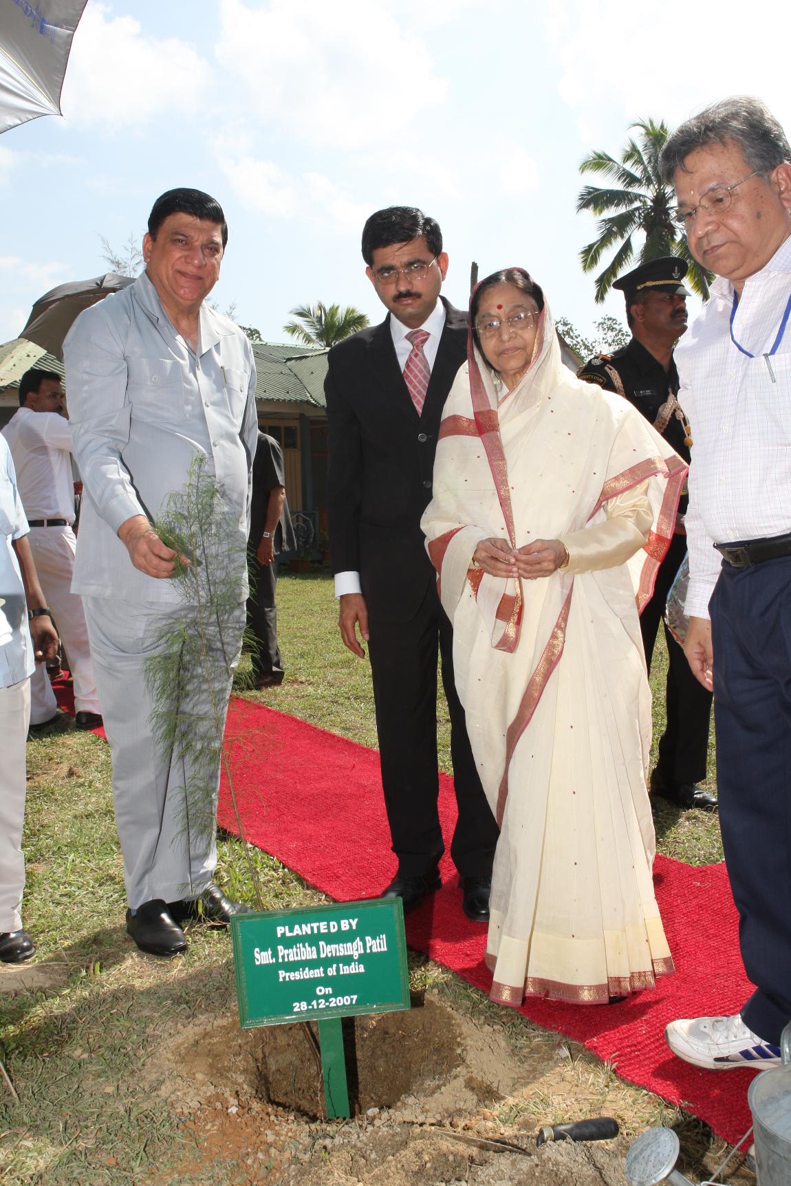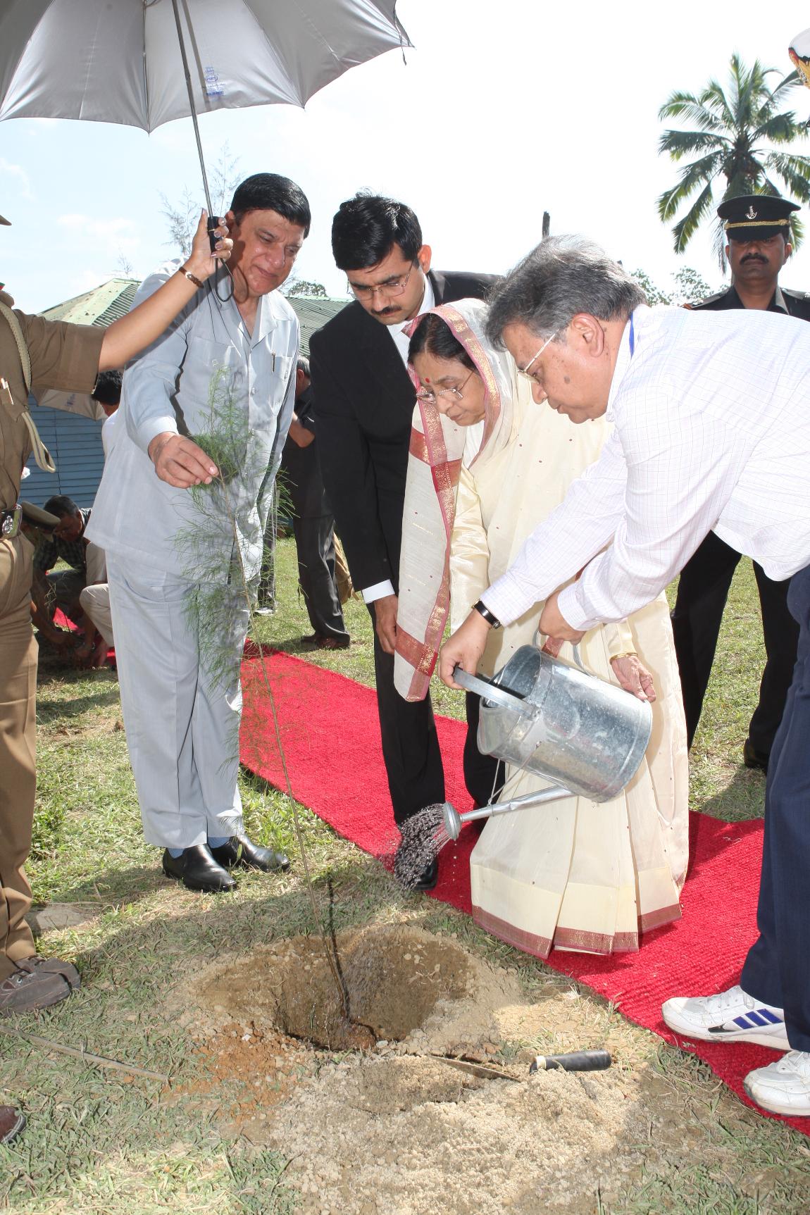 | Caption: | The President of India Smt Pratibha Devisingh Patil arriving at Wandoor Helipad and planting a Casuarina sapling near the Wandoor Helipad in Andaman and Nicobar on Dec 28, 2007 |