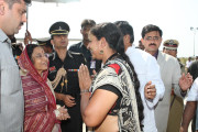 | Caption: | The President of India Smt Pratibha Devisingh Patil arriving at Renigunta Airport in Andhra Pradesh on Dec 29, 2007 |