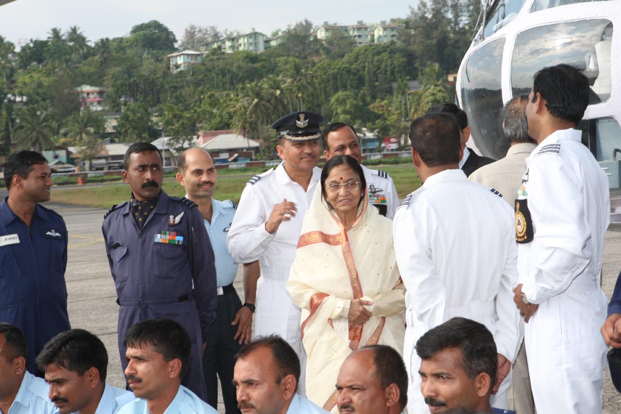 | Caption: | The President of India Smt Pratibha Devisingh Patil posing for a Group Photograph at Wandoor Helipad in Andaman and Nicobar on Dec 28, 2007 |