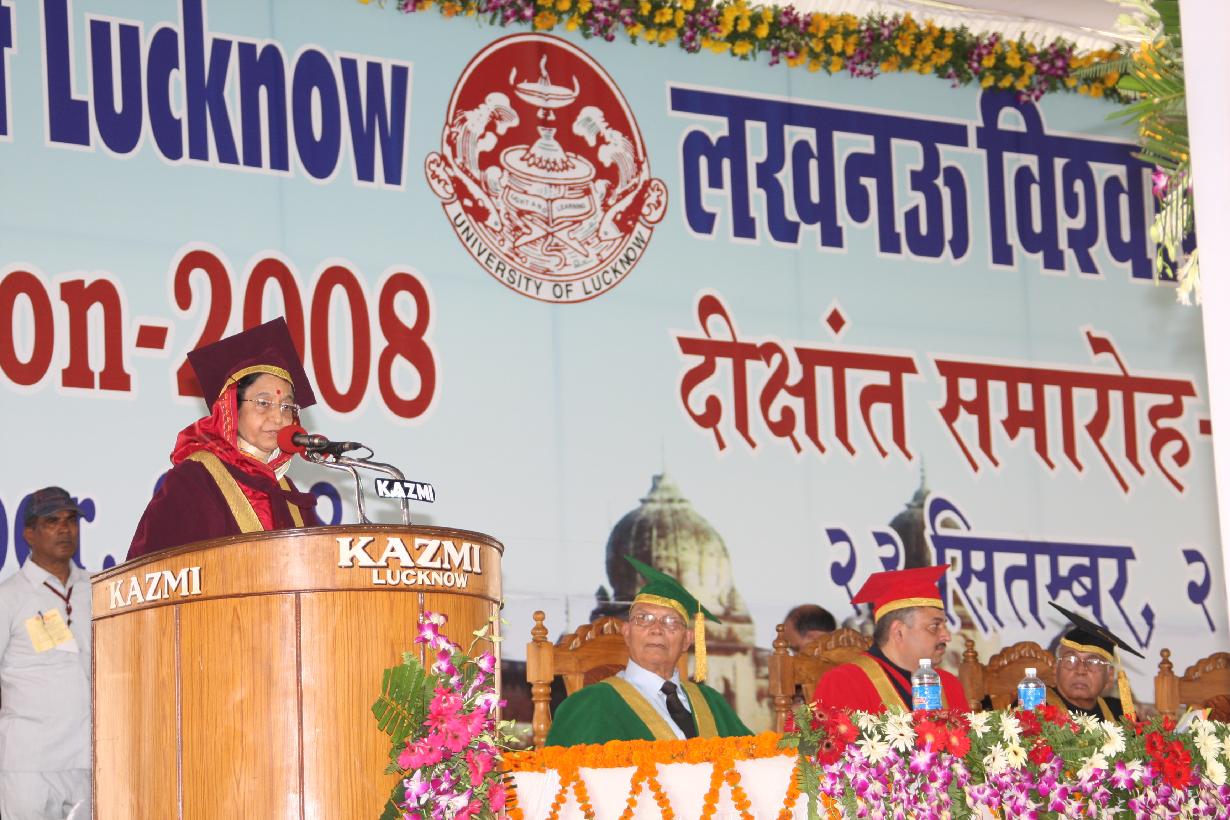 | Caption: | The President of India, Smt Pratibha Devisingh Patil during a Special Convocation of University of Lucknow at Lucknow in Uttar Pradesh on Sep 23, 2008 |