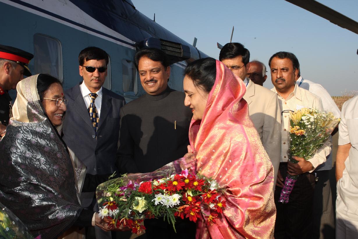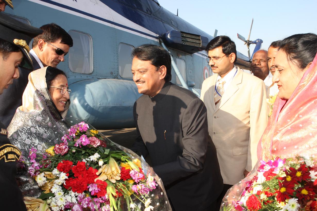 | Caption: | The President of India, Smt Pratibha Devisingh Patil being welcomed by the Chief Minister of Maharashtra, Shri Vilasrao Deshmukh at Latur Helipad in Maharashtra on Jan 18, 2008 |