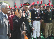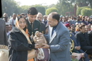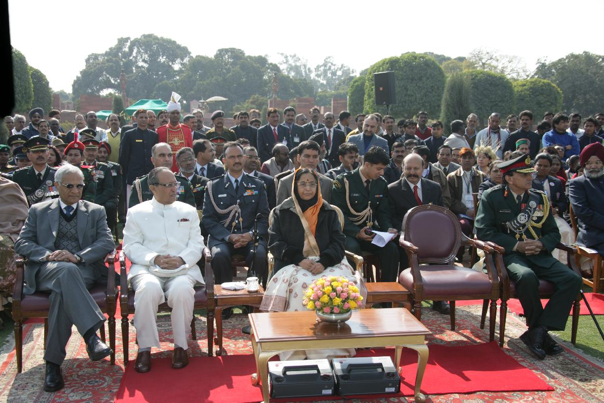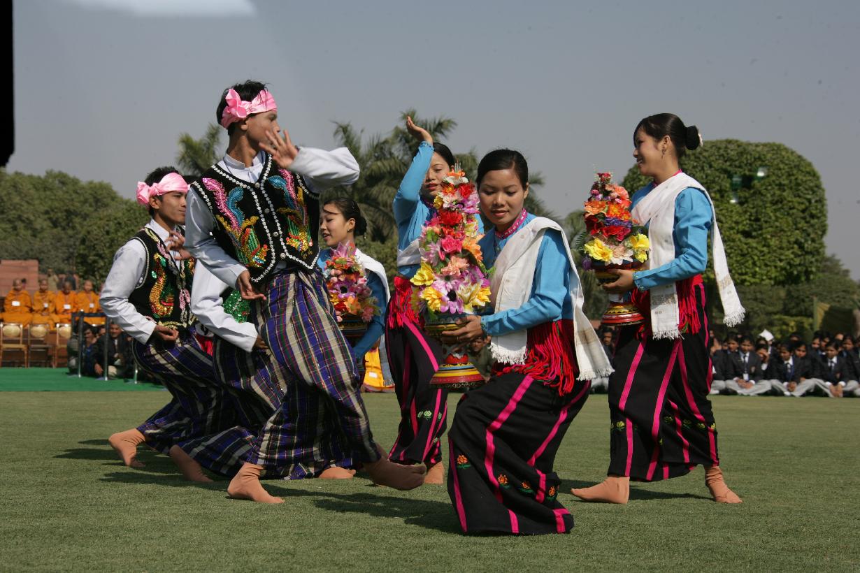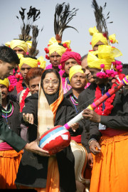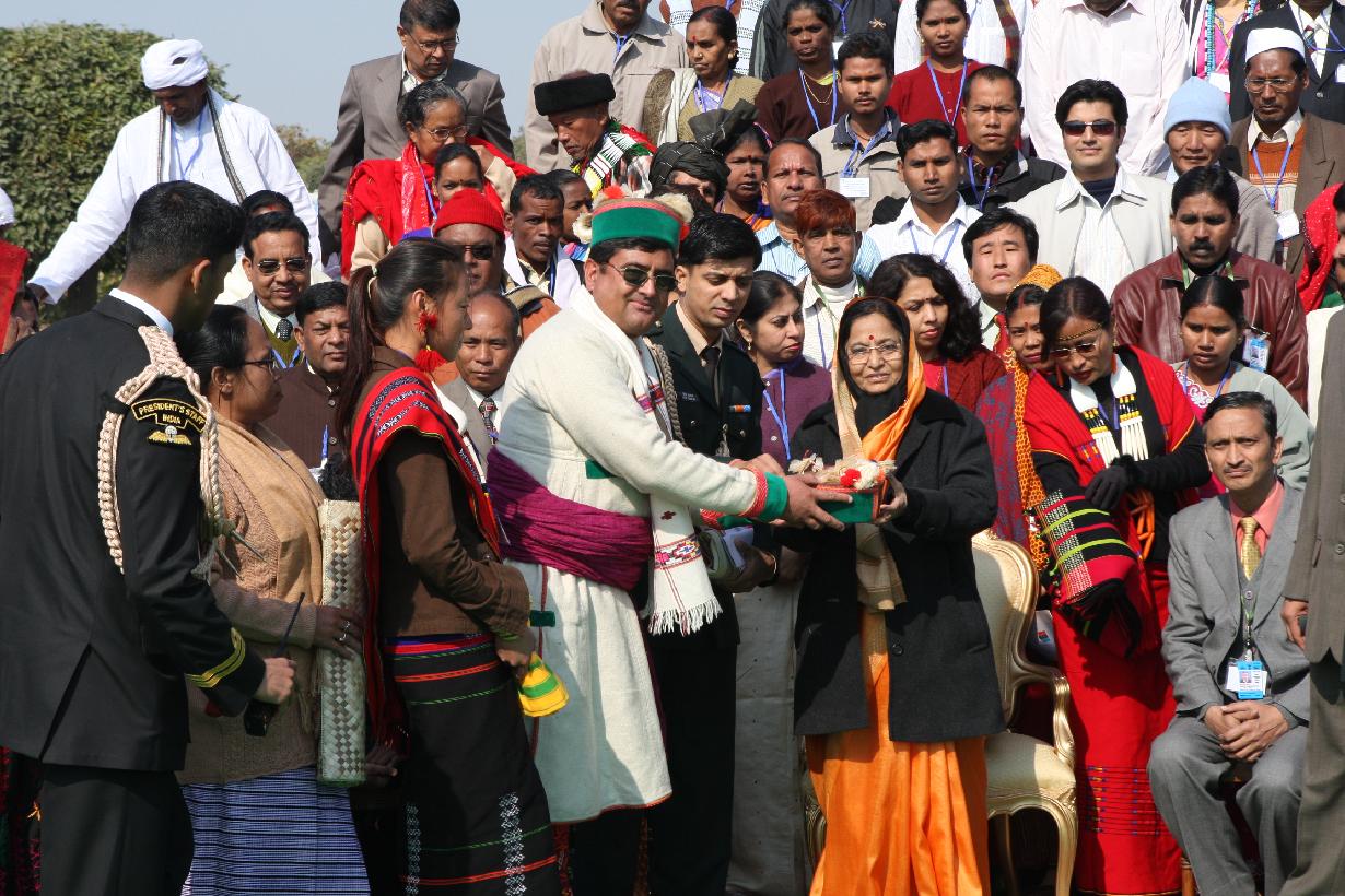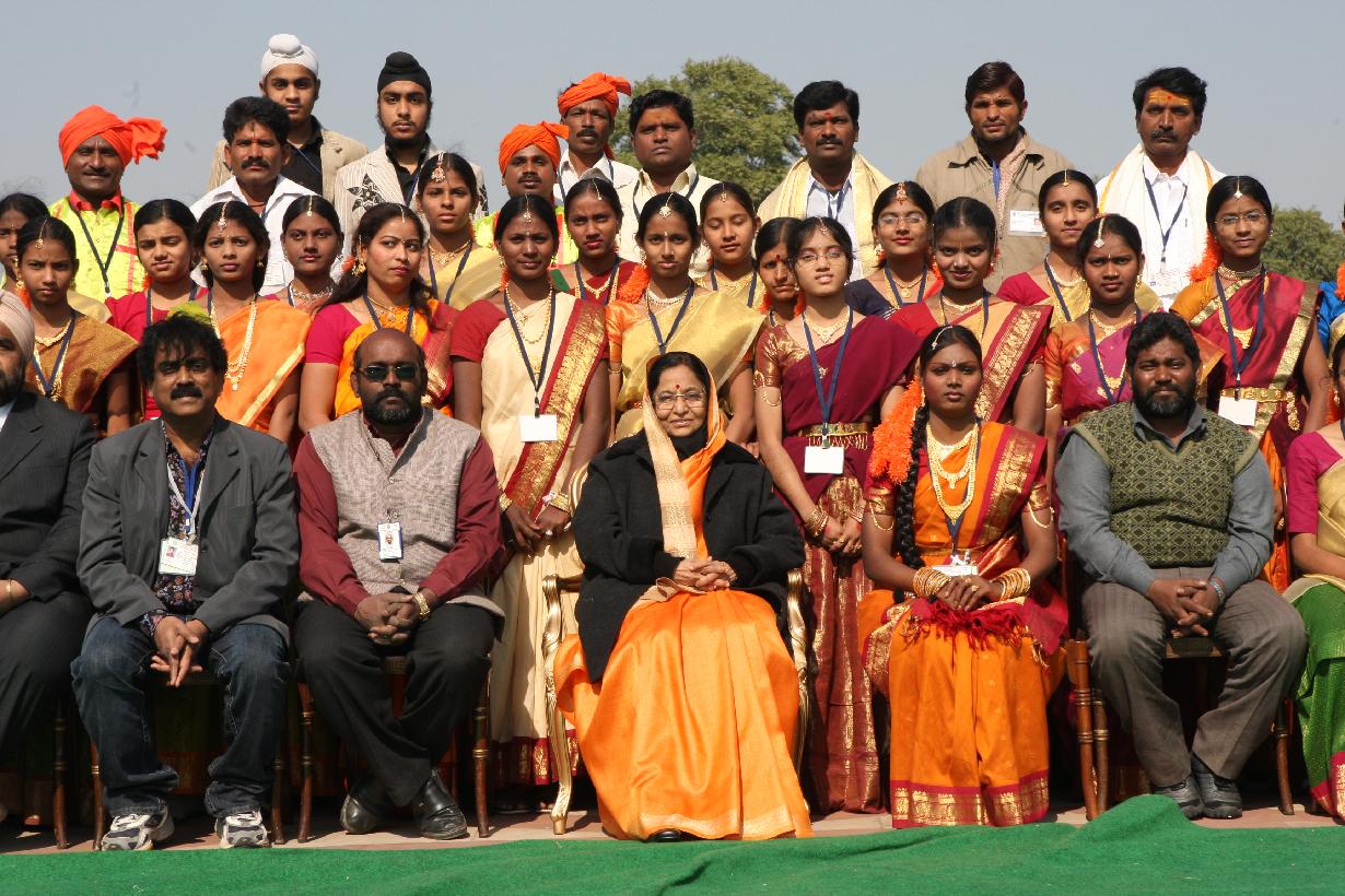 | Caption: | The President of India, Smt Pratibha Devisingh Patil with Tableaux Artists & Tribal Guests who took part in the 59th Republic Day Celebrations at Rashtrapati Bhavan in New Delhi on Jan 27, 2008 |