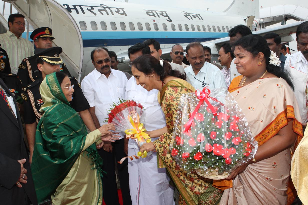 | Caption: | The President of India Smt Pratibha Devisingh Patil arriving at Chennai International Airport in Tamil Nadu on Dec 21, 2007 |