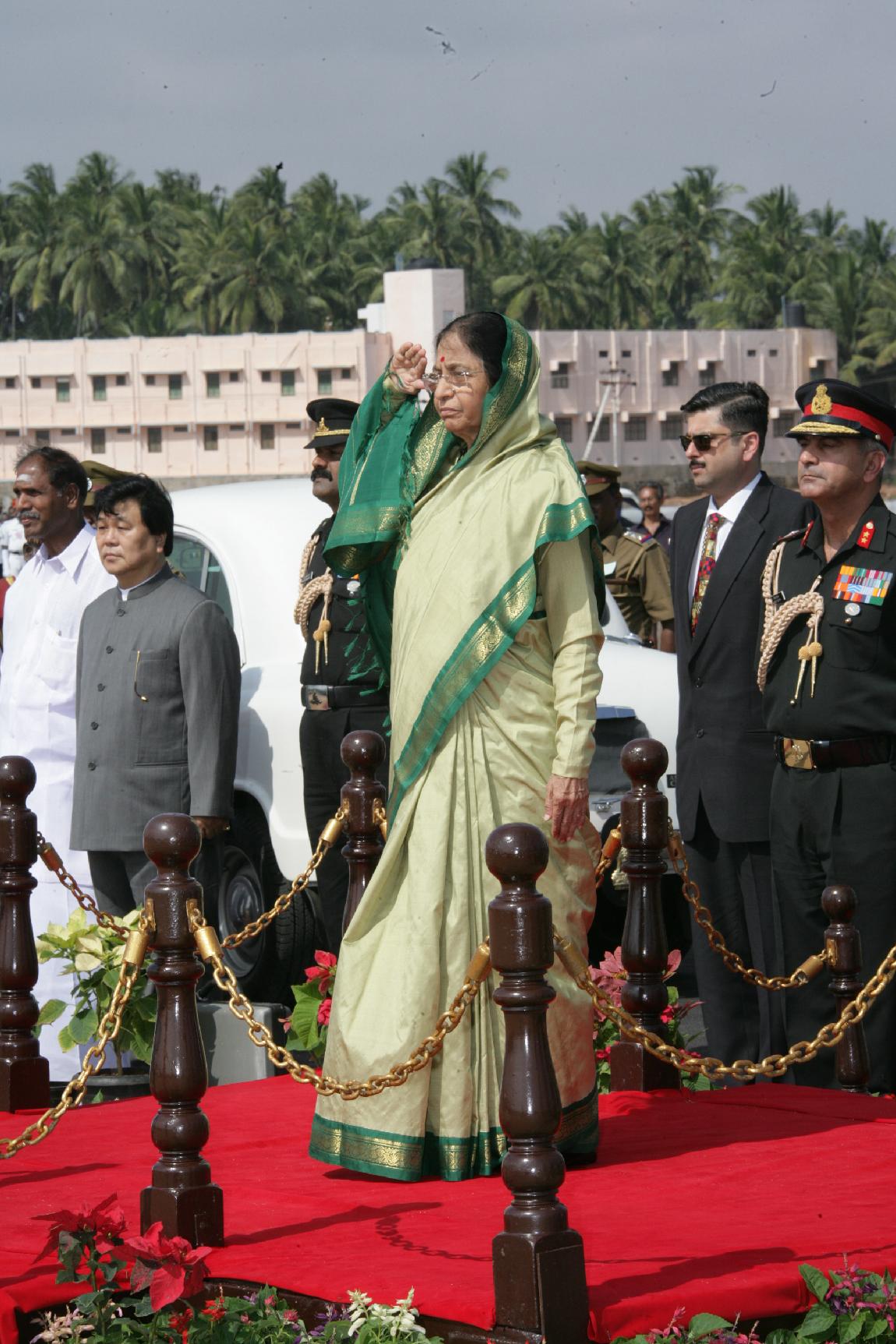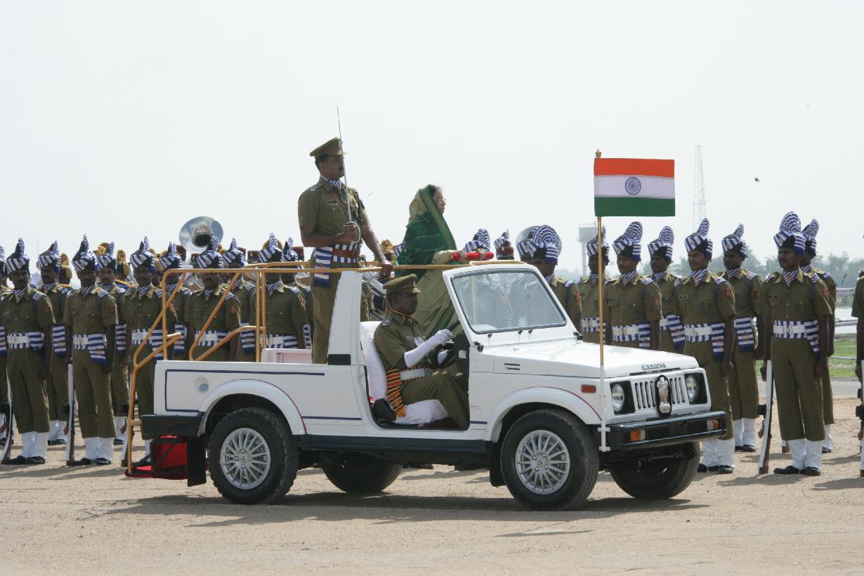 | Caption: | The President of India Smt Pratibha Devisingh Patil inspecting Guard of Honour at Uppalam Helipad in Tamil Nadu on Dec 21, 2007 |