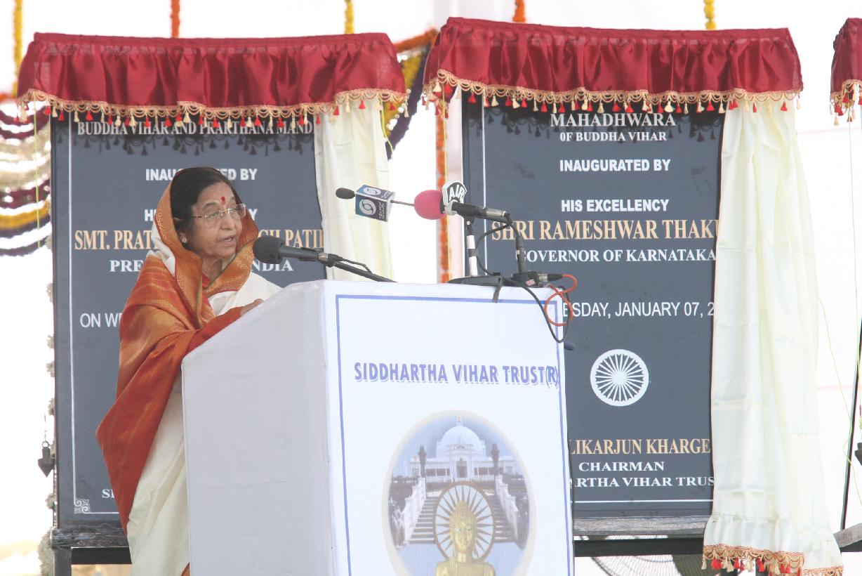 | Caption: | The President of India, Smt Pratibha Devisingh Patil during the Inaugural Function of Buddha Vihar and Meditation Hall at Gulbarga in Karnataka on Jan 07, 2009 |