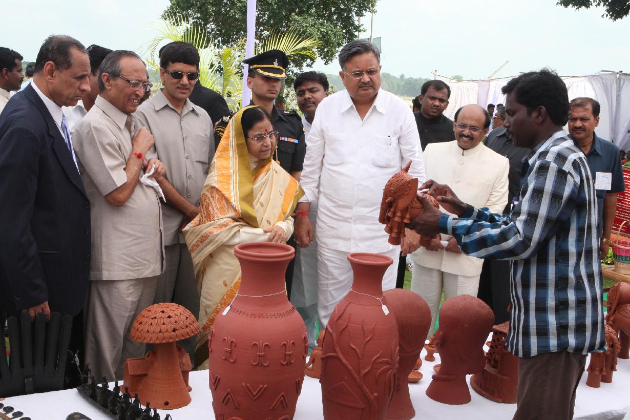 | Caption: | The President of India, Smt Pratibha Devisingh Patil during visit to Handicraft Mela at Chitrakoot in Madhya Pradesh on Sep 29, 2008 |