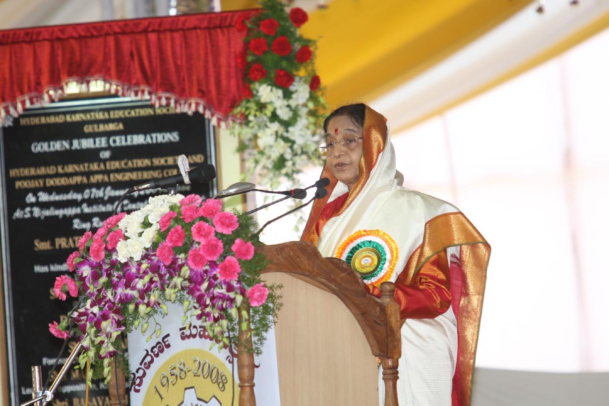 | Caption: | The President of India, Smt Pratibha Devisingh Patil during the Golden Jubilee Celebrations of the Hyderabad Karnataka Education Society at Gulbarga in Karnataka on Jan 07, 2009 |