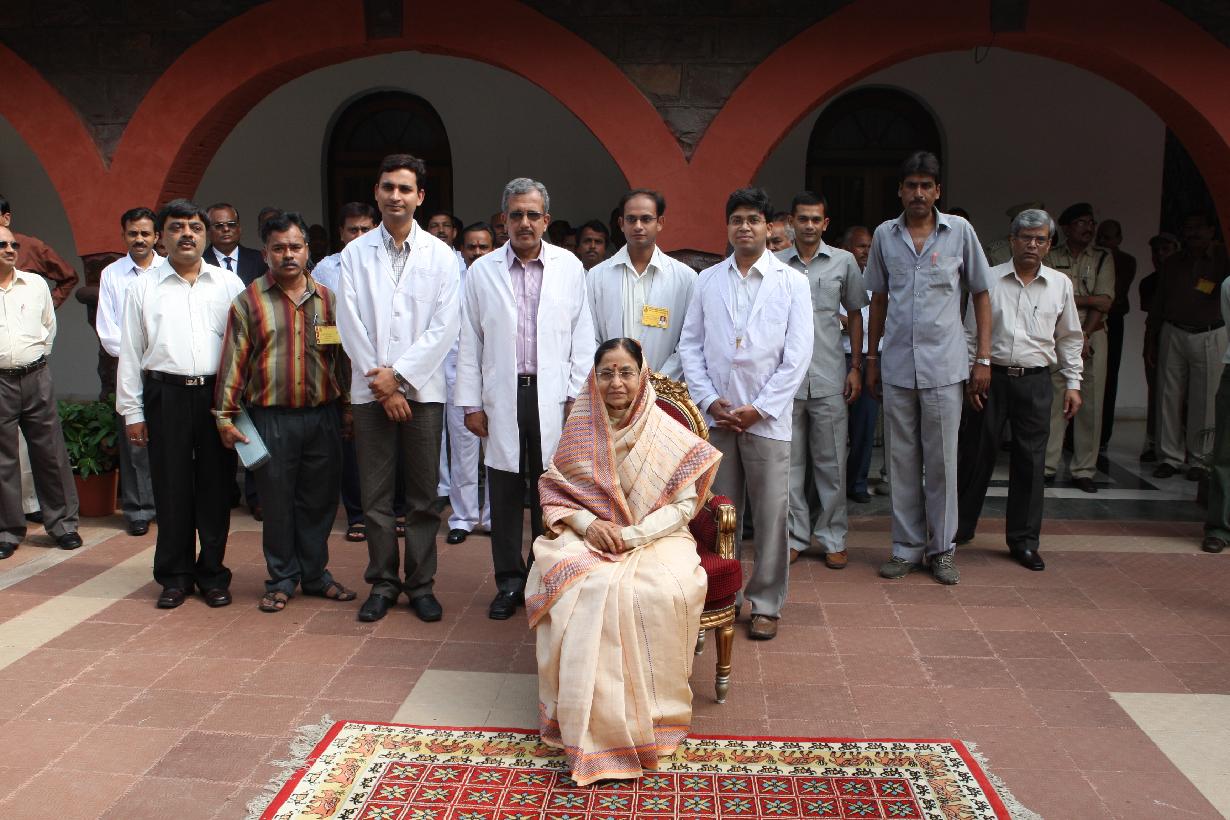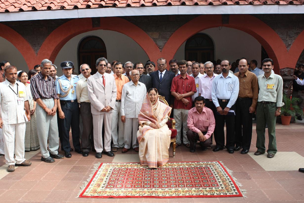 | Caption: | The President of India, Smt Pratibha Devisingh Patil posing for a Group Photographs with Raj Bhavan Staff at Bhopal in Madhya Pradesh on June 30, 2008 |