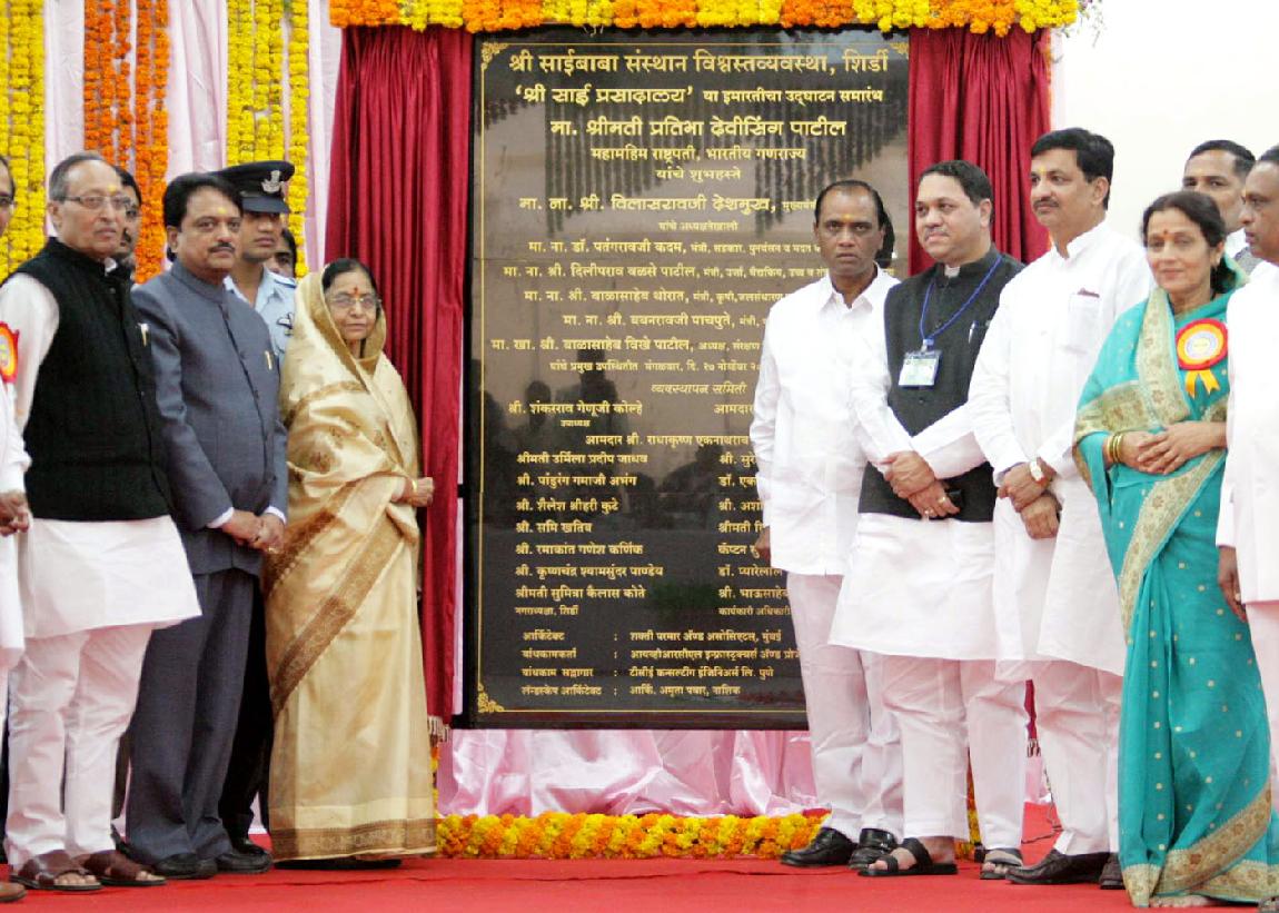 | Caption: | The President of India, Smt Pratibha Devisingh Patil inaugurating the New Building of Prasadalaya in Saibaba Sansthan at Shirdi in Maharashtra on Nov 27, 2007 |