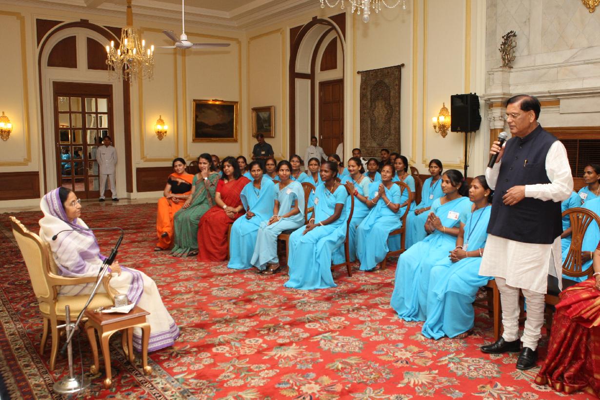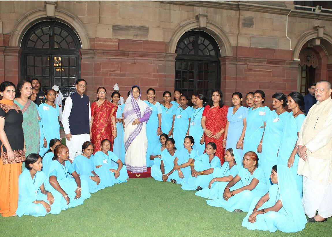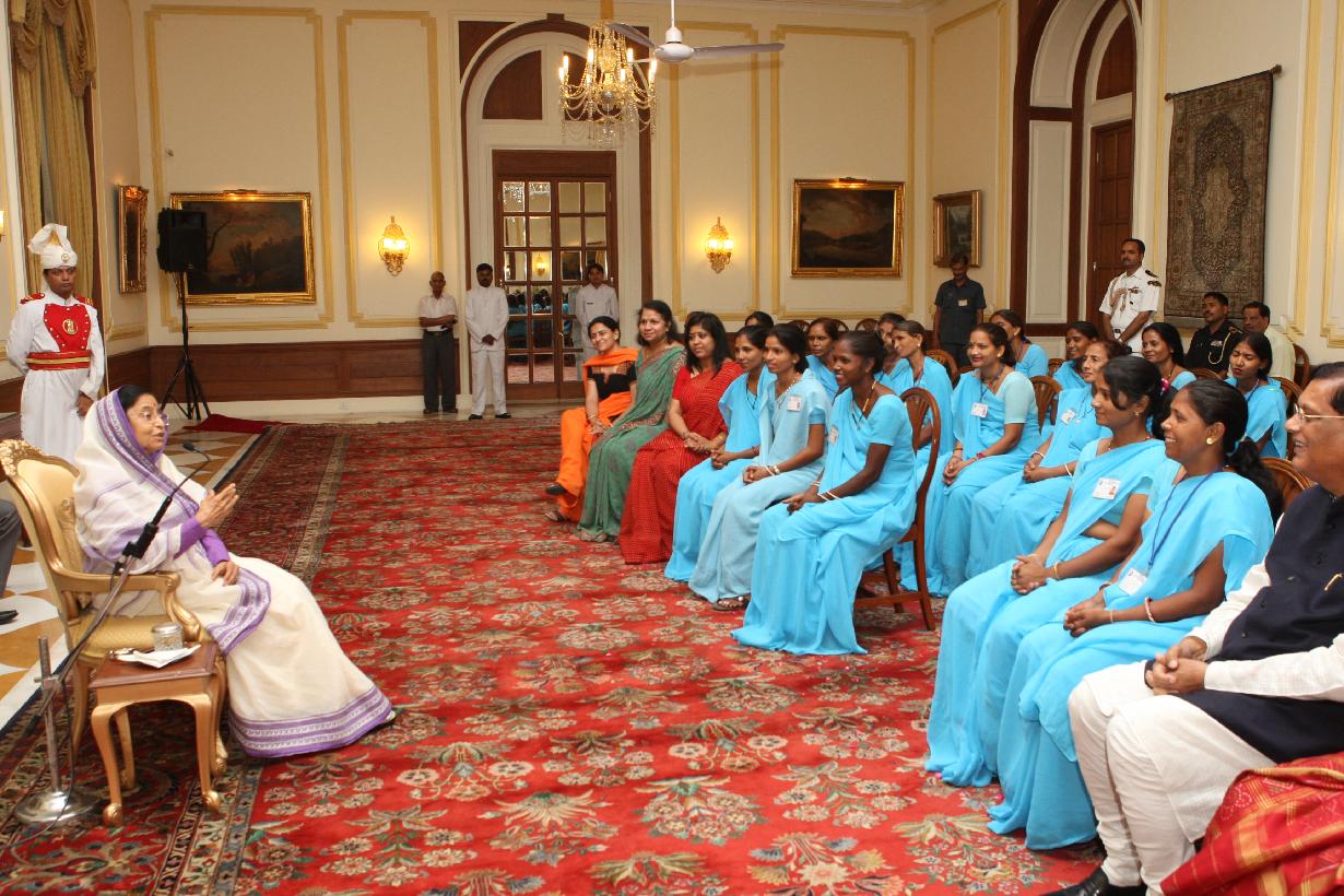 | Caption: | The President of India, Smt Pratibha Devisingh Patil interacting with Smt Usha Chaumar from Sulabh International at Rashtrapati Bhavan in New Delhi on June 24, 2008 |
