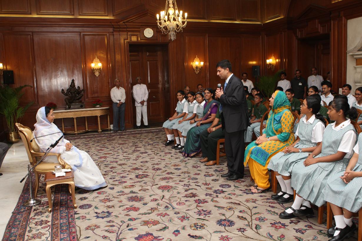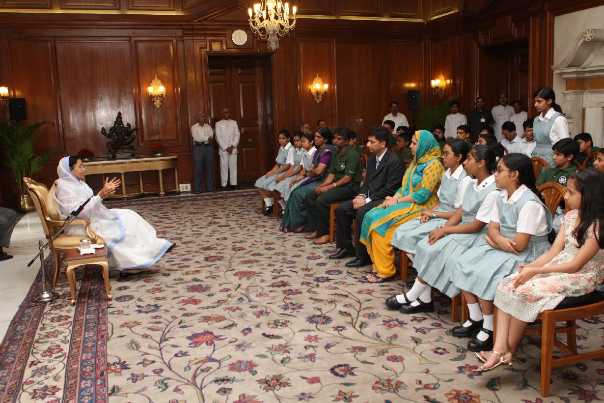 | Caption: | The President of India, Smt Pratibha Devisingh Patil interacting with the Students and Staffs from Indian School, Al-Ghubra in Muscat, Oman who called on her at Rashtrapati Bhavan in New Delhi on June 14, 2008 |