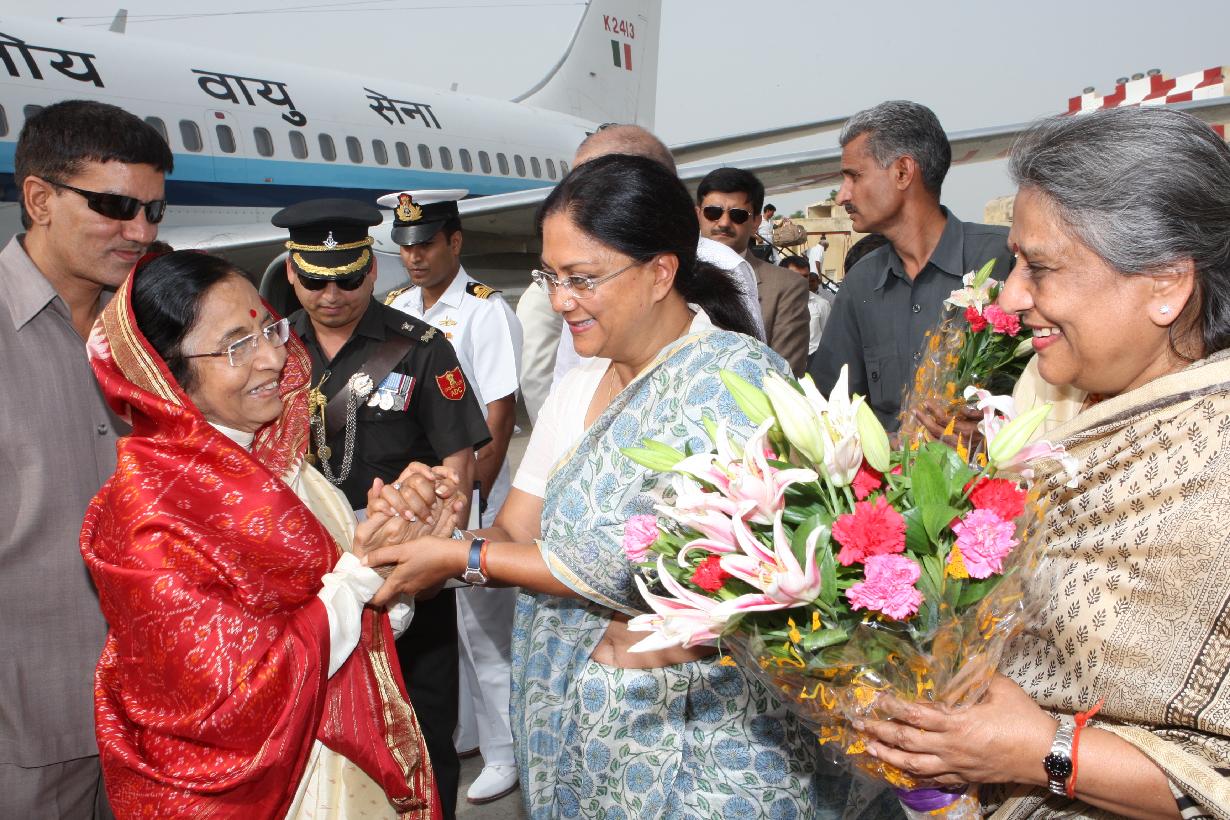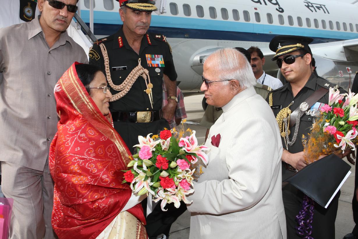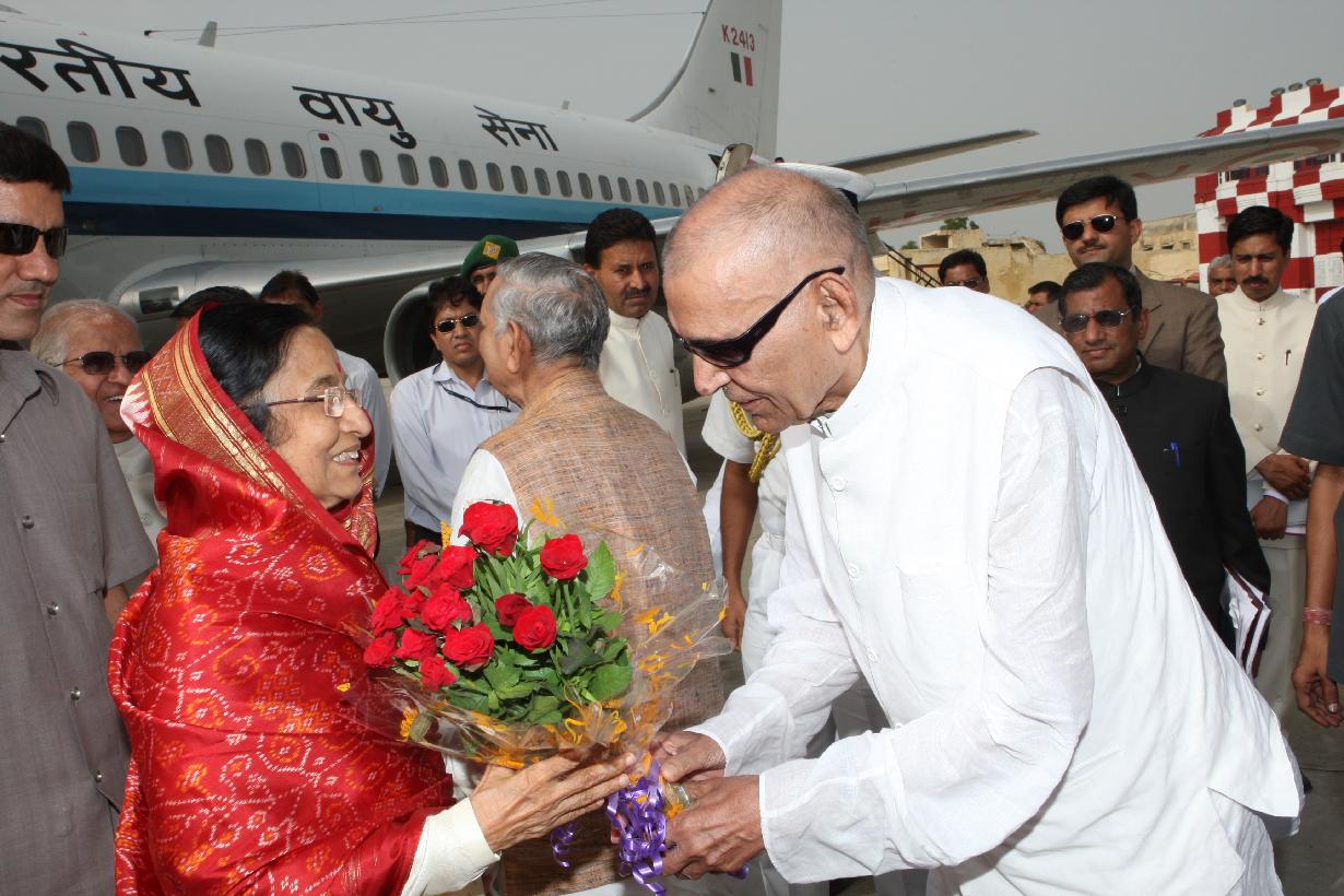 | Caption: | The President of India, Smt Pratibha Devisingh Patil arriving at Sanganer Airport in Rajasthan on June 21, 2008 |