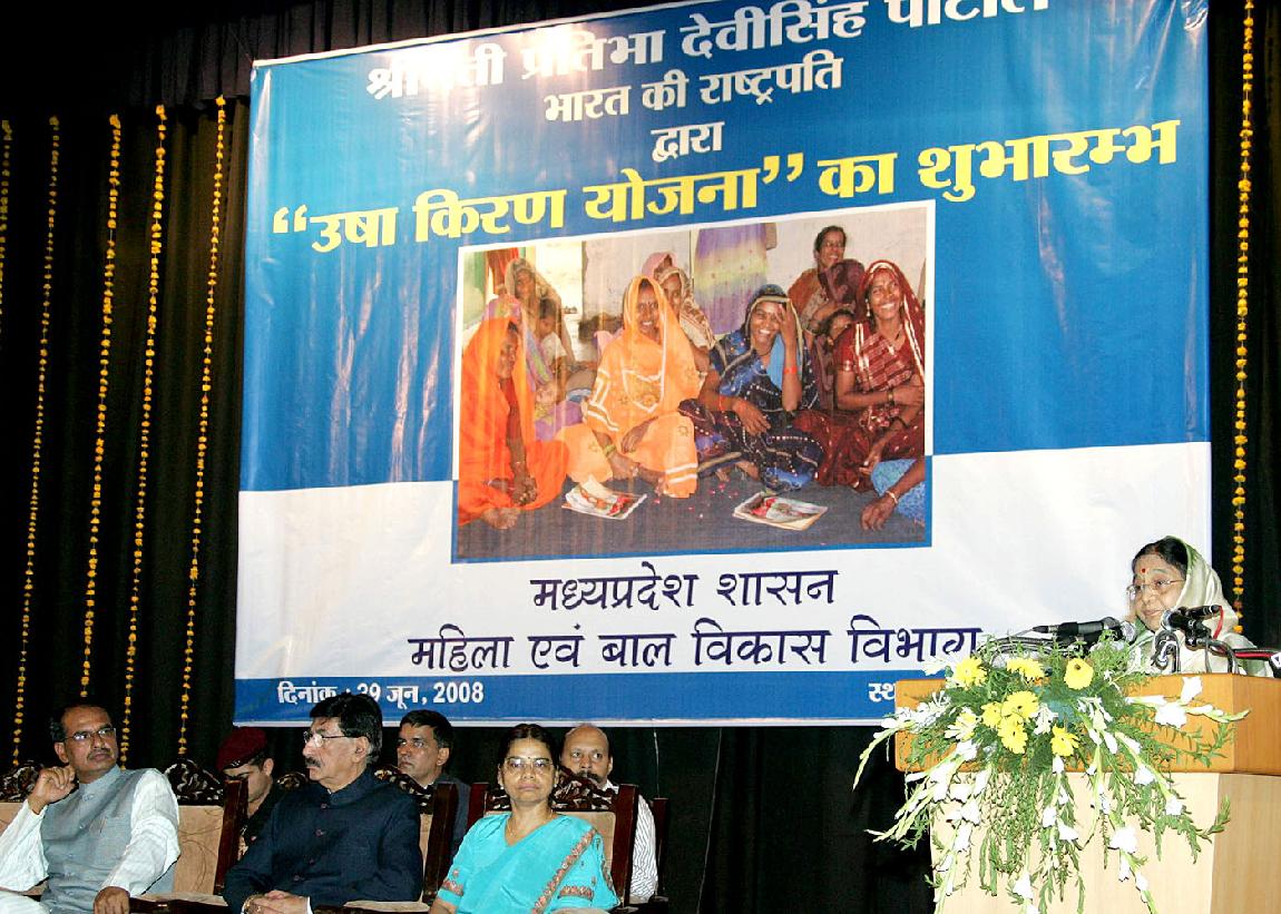 | Caption: | The President of India, Smt Pratibha Devisingh Patil during the inaugural Function of Usha Kiran Scheme for Protection of Victims of Domestic Violence Launched by the Women & Child Development Department, Govt of Madhya Pradesh at Bhopal in Madhya Pradesh on June 29, 2008 |