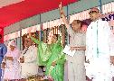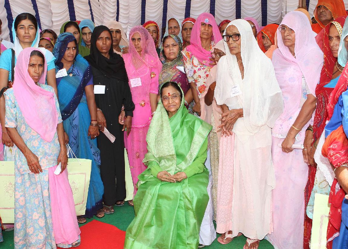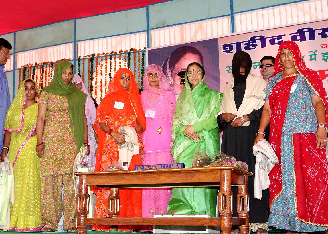 | Caption: | The President of India, Smt Pratibha Devisingh Patil felicitating a Group of war widows at Indrapura Village in Jhunjhunu District in Rajasthan on June 22, 2008 |