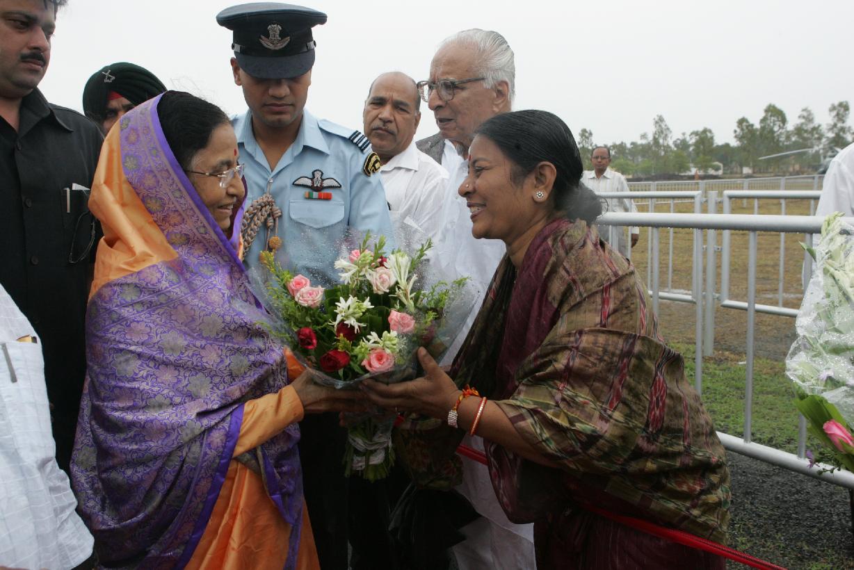 | Caption: | The President of India, Smt Pratibha Devisingh Patil arriving at Ujjain Helipad in Madhya Pradesh on June 28, 2008 |