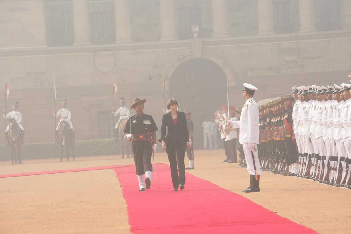 | Caption: | The President of India, Smt Pratibha Devisingh Patil at the Ceremonial Reception of the President of the Swiss Confederation, HE Ms Micheline Calmy-Rey at the Forecourt of Rashtrapati Bhavan in New Delhi on Nov 07, 2007 |