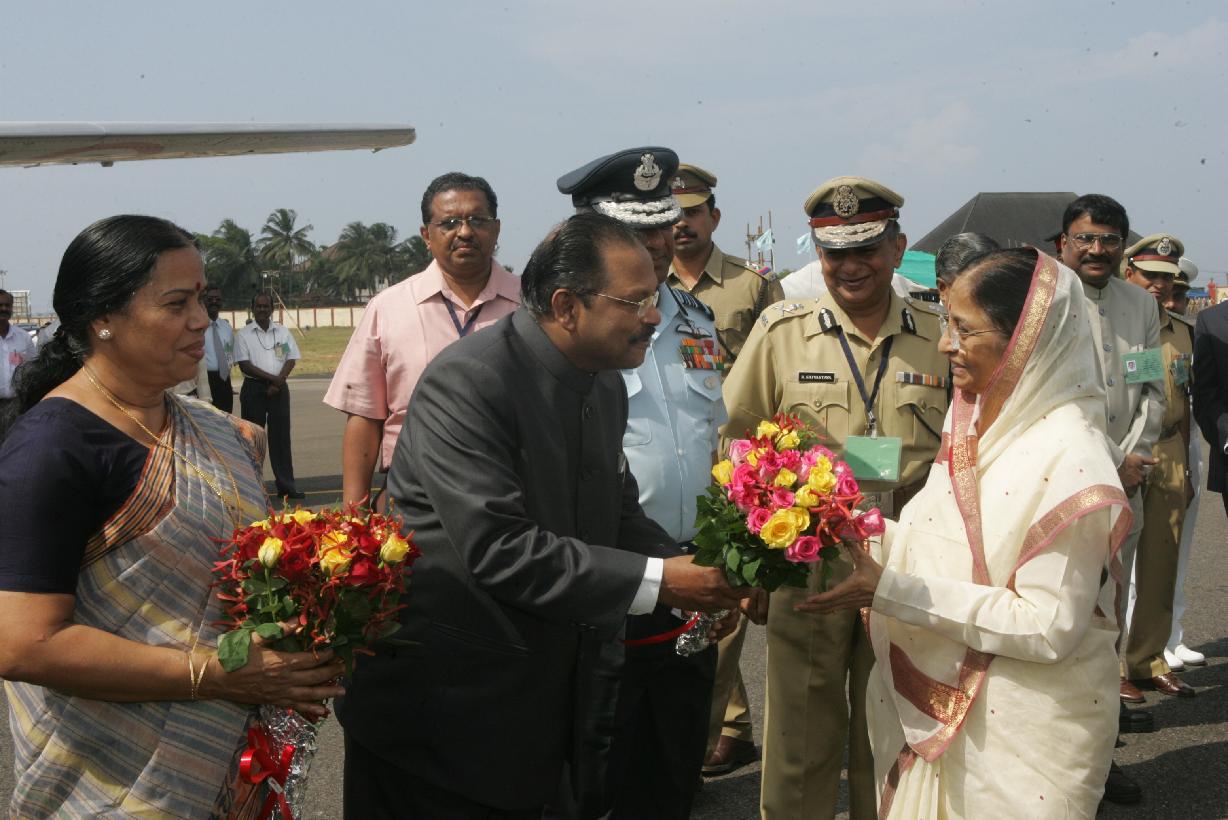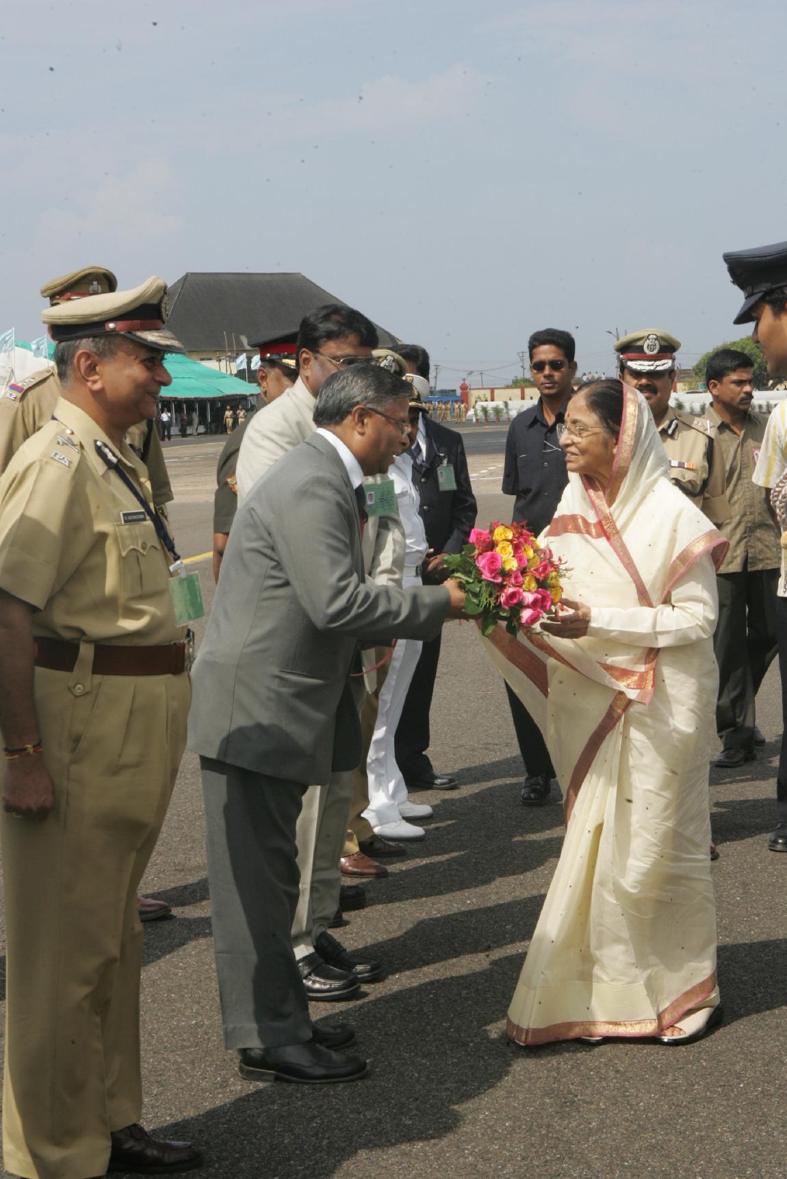 | Caption: | The President of India, Smt Pratibha Devisingh Patil before departure from Thiruvananthapuram Airport in Kerala on Nov 02, 2007 |