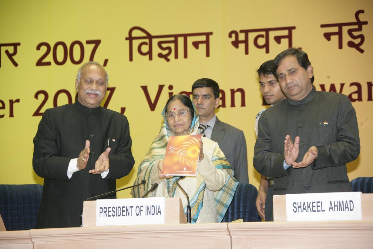 | Caption: | The President of India, Smt Pratibha Devisingh Patil presenting the National Award for Renewable Energy on the occasion of the Silver Jubilee function of the Ministry of New and Renewable Energy at Vigyan Bhavan in New Delhi on Nov 22, 2007 |