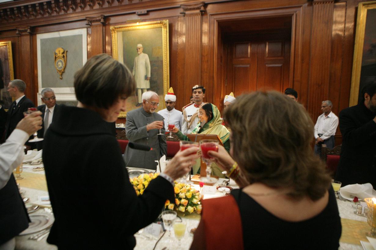 | Caption: | The President of India, Smt Pratibha Devisingh Patil at the Banquet Hosted in Honour of the President of the Swiss Confederation, HE Ms Micheline Calmy-Rey at Rashtrapati Bhavan in New Delhi on Nov 07, 2007 |