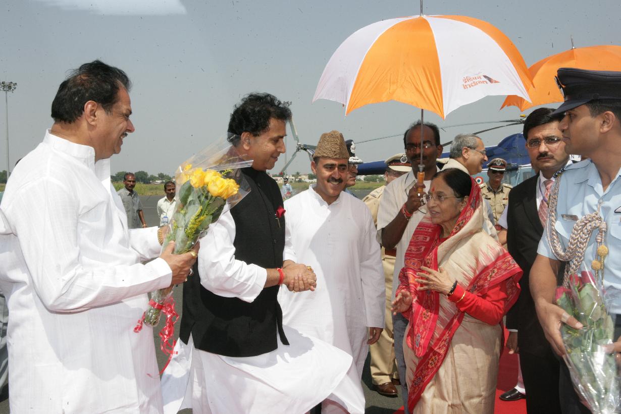 | Caption: | The President of India, Smt Pratibha Devisingh Patil before departure from Amravati Airport in Maharashtra on Oct 14, 2007 |