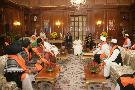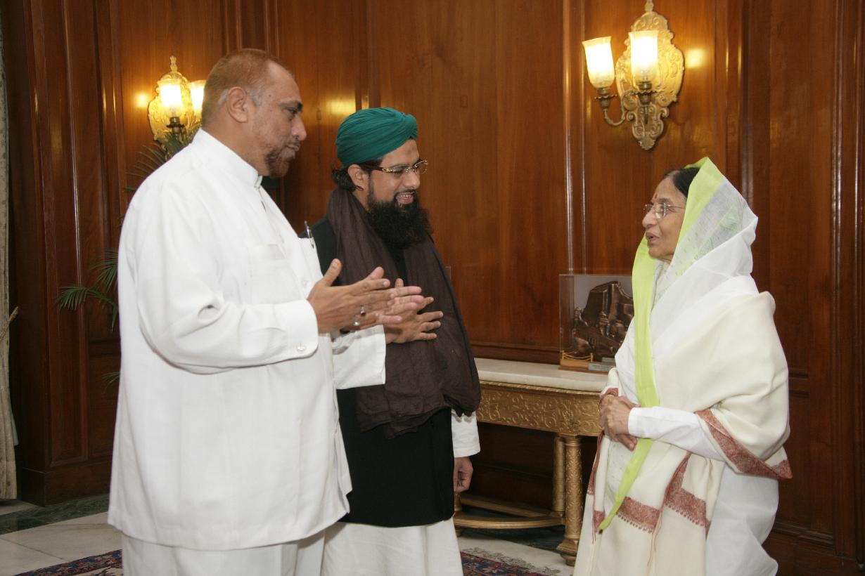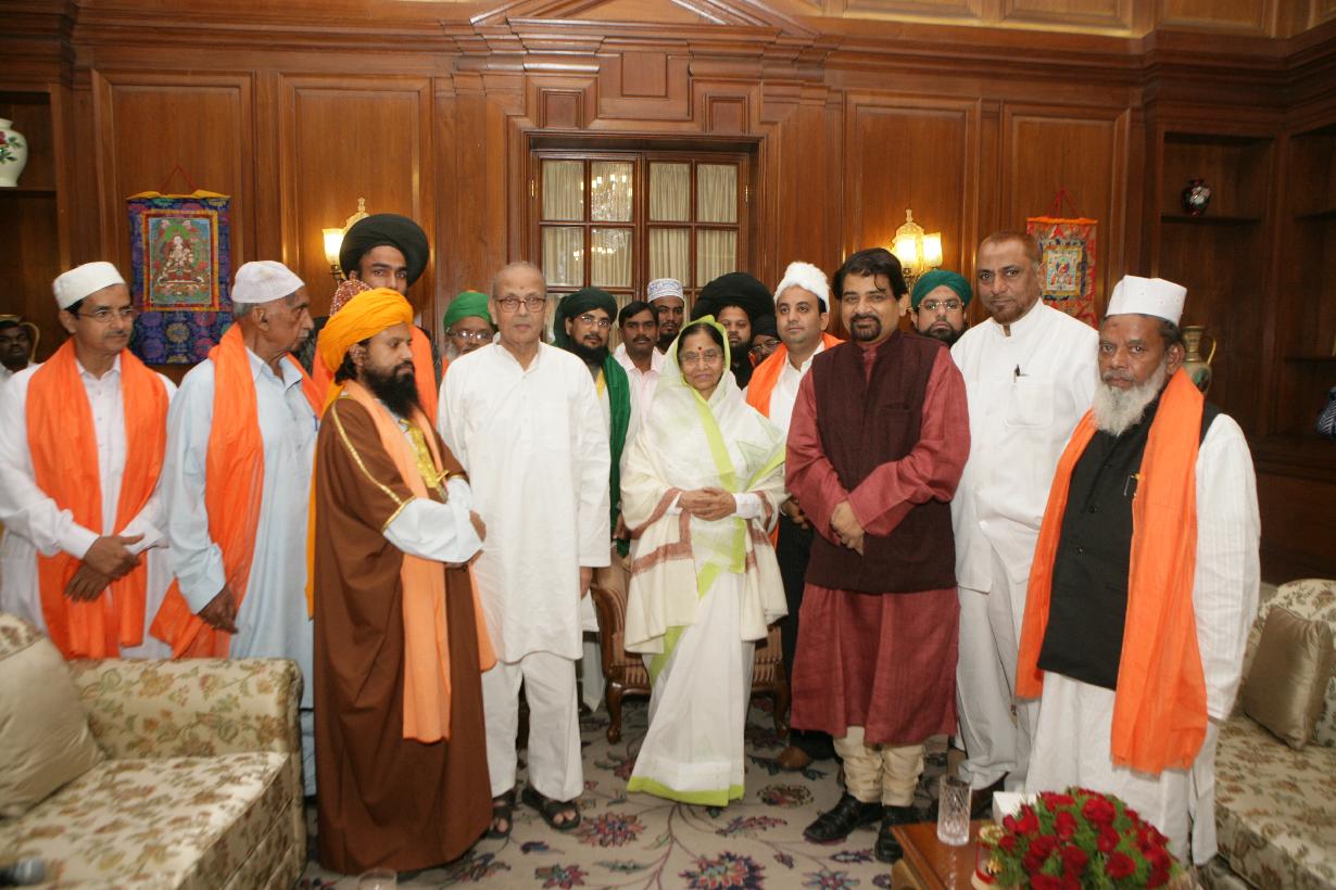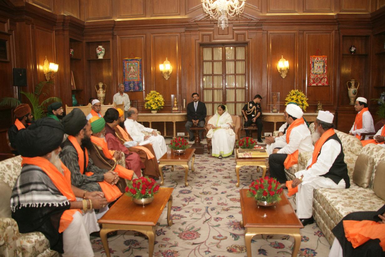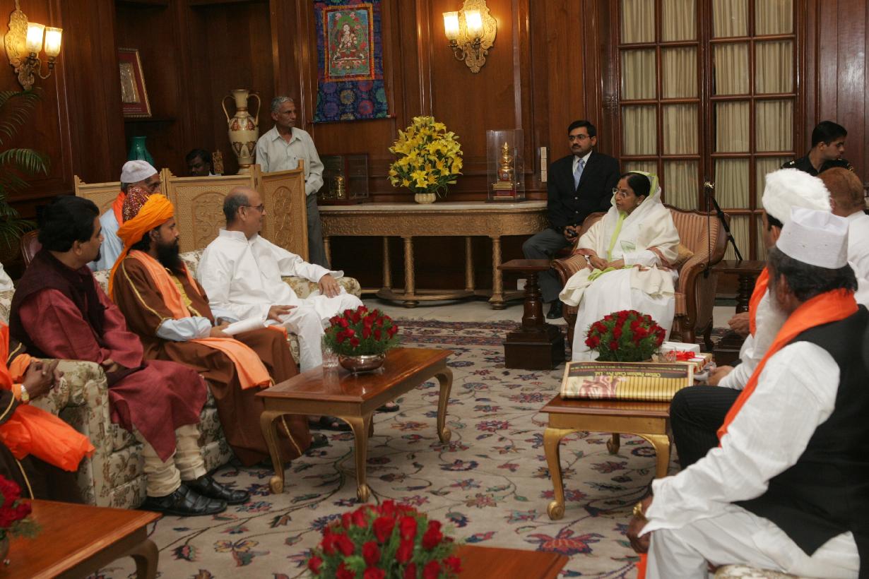 | Caption: | The President of India, Smt Pratibha Devisingh Patil interacting with the Former Prime Minister of India, Shri V P Singh alongwith a Delegation from World Sufi Council at Committee Room of Rashtrapati Bhavan in New Delhi on Oct 19, 2007 |