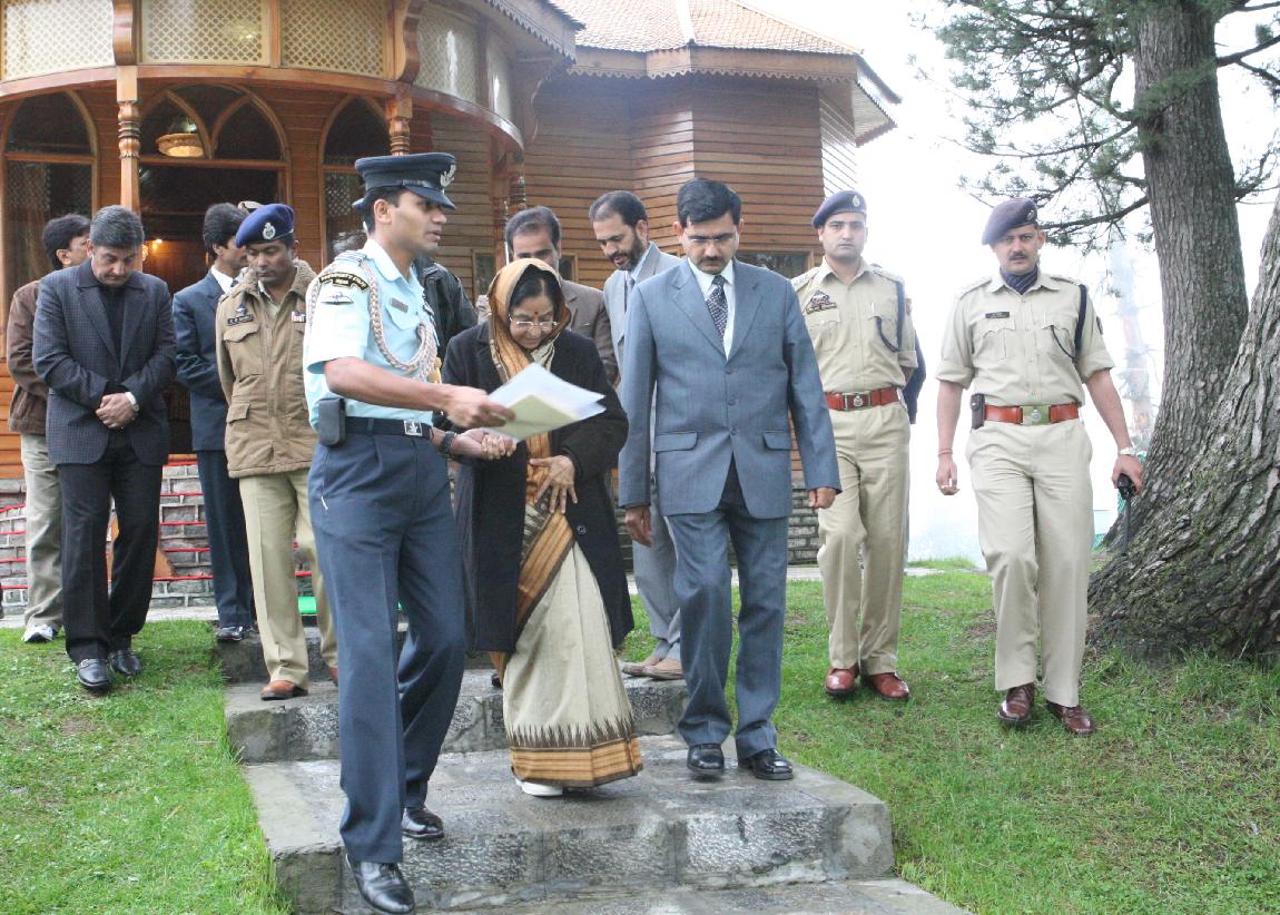 | Caption: | The President of India, Smt Pratibha Devisingh Patil posing for a Group Photographs at State Guest House in Jammu & Kashmir on May 25, 2008 |