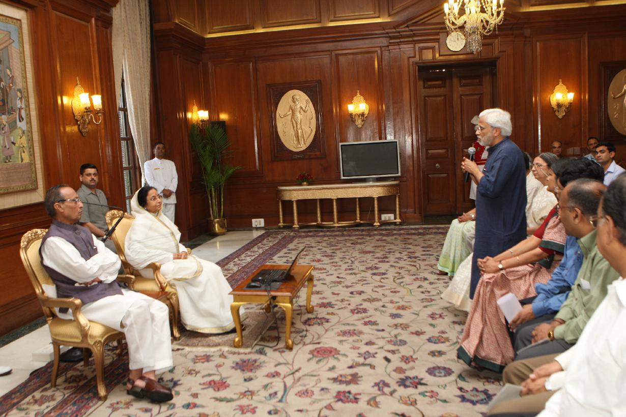 | Caption: | The President of India, Smt Pratibha Devisingh Patil interacting with the Members of the National Knowledge Commission and the Azim Premji Foundation at the launch of a National Portal for Teachers by the President at Rashtrapati Bhavan in New Delhi on Sep 05, 2008 |