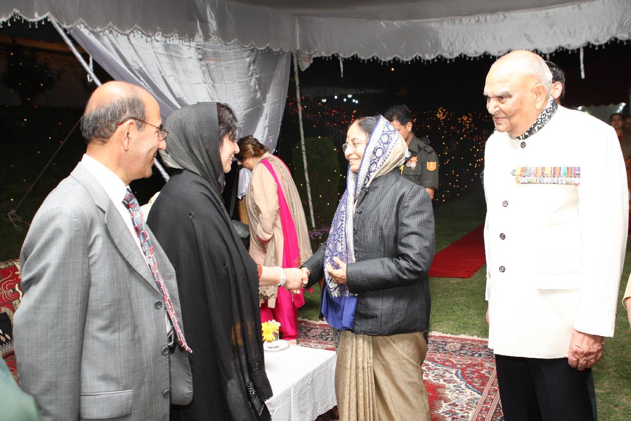 | Caption: | The President of India, Smt Pratibha Devisingh Patil at the Banquet Hosted by the Governor of Jammu & Kashmir, Shri Srinivas Kumar Sinha at Srinagar in Jammu & Kashmir on May 25, 2008 |