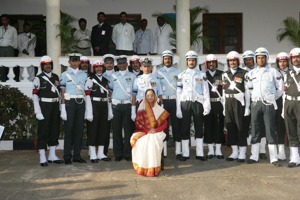 | Caption: | The President of India, Smt Pratibha Devisingh Patil posing for a Group Photograph with Raj Bhavan Staff at Hyderabad in Andhra Pradesh on Oct 14, 2007 |