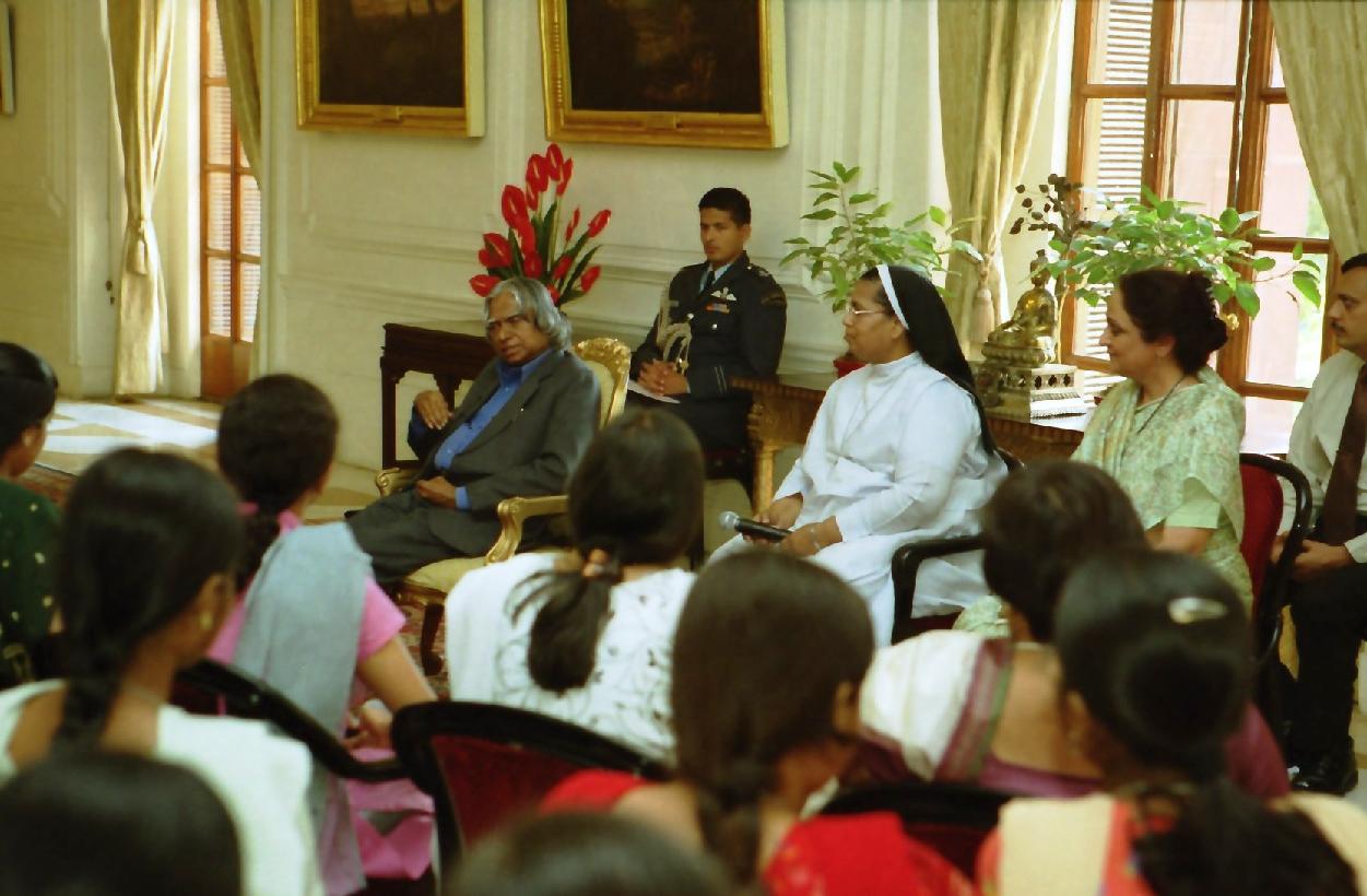 | Caption: | The Student from Patna Women's College Patna calling on the President of India, Dr A P J Abdul Kalam at the Yellow Drawing Room of Rashtrapati Bhavan in New Delhi on Nov 18, 2003 |
