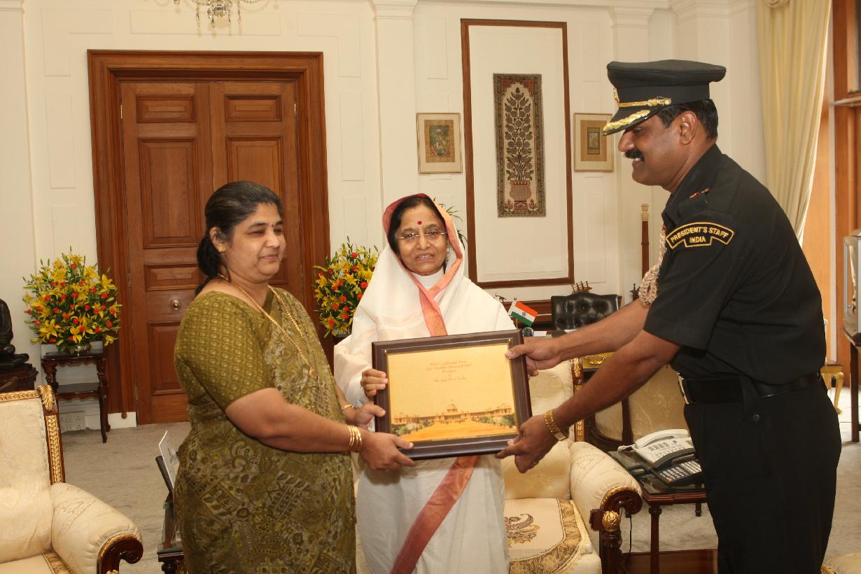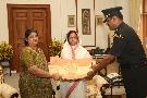 | Caption: | The President of India, Smt Pratibha Devisingh Patil during the Farewell to Radhakrishnan JCO ADC at Rashtrapati Bhavan in New Delhi on May 22, 2008 |