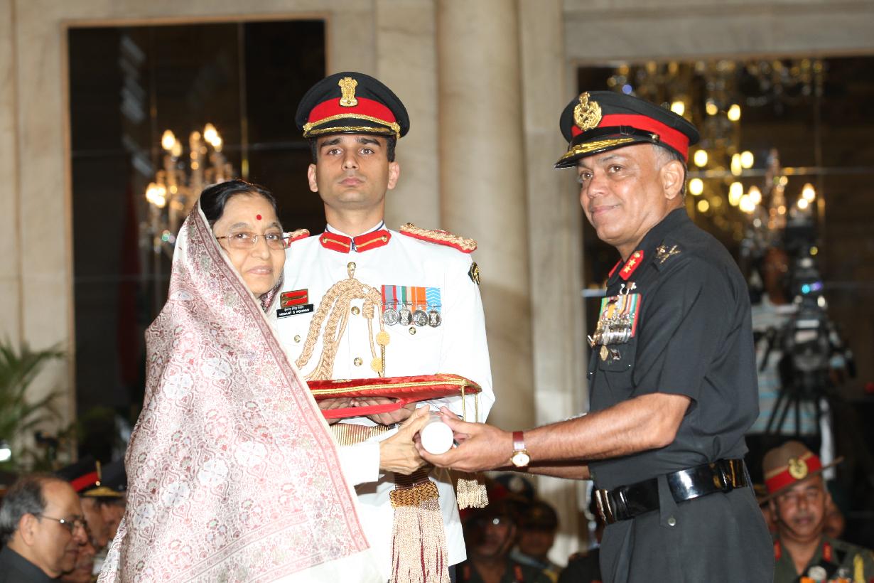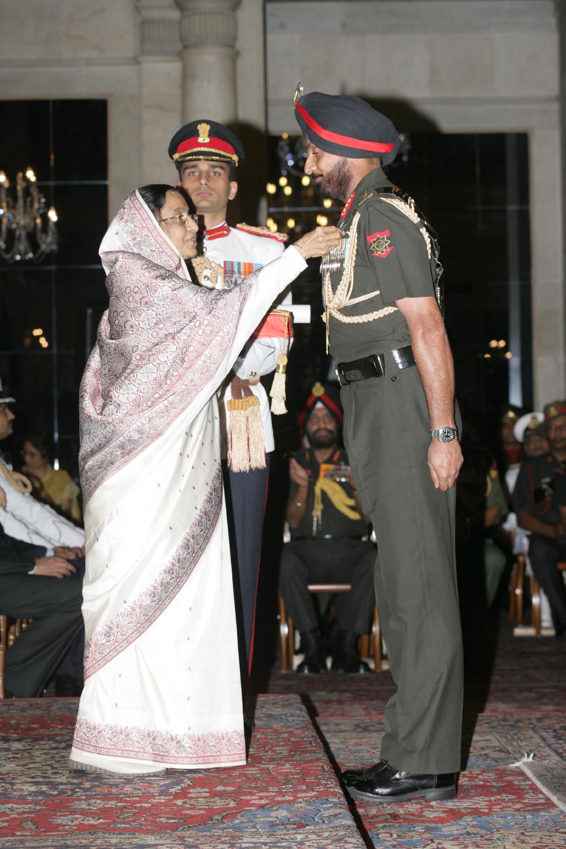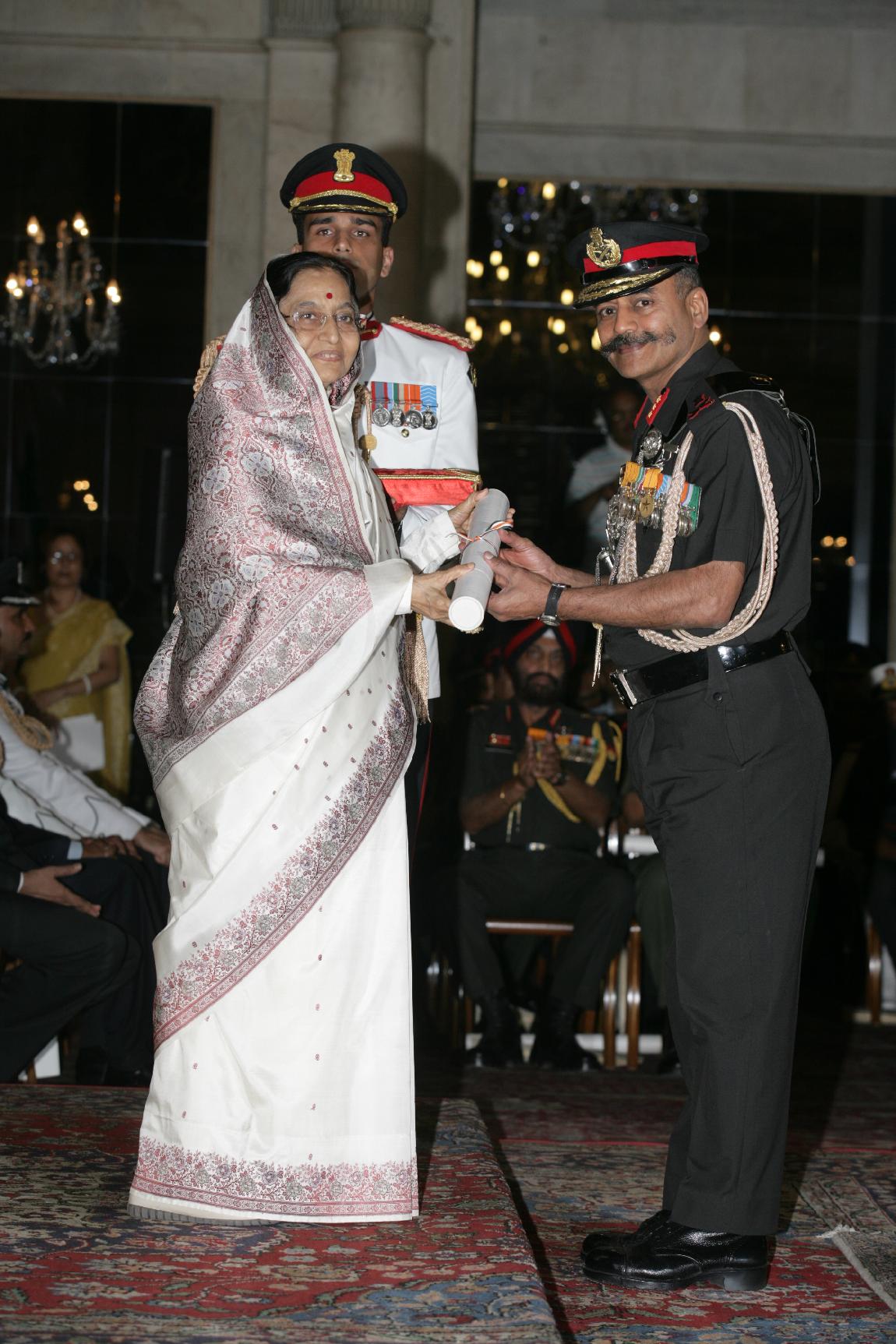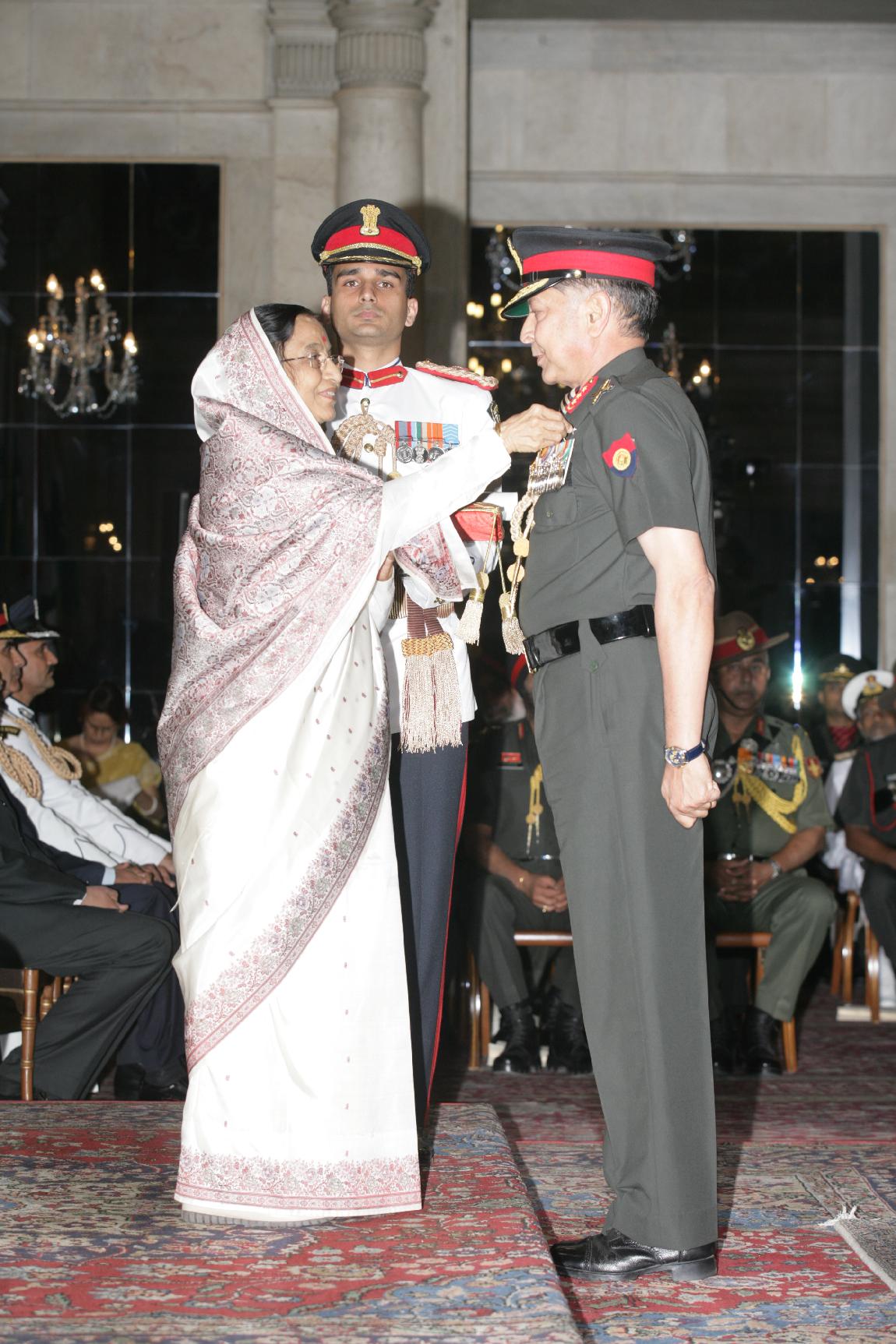 | Caption: | The President of India, Smt Pratibha Devisingh Patil presenting the Defence Investiture Awards at a Function at Ashoka Hall of Rashtrapati Bhavan in New Delhi on May 14, 2008 |