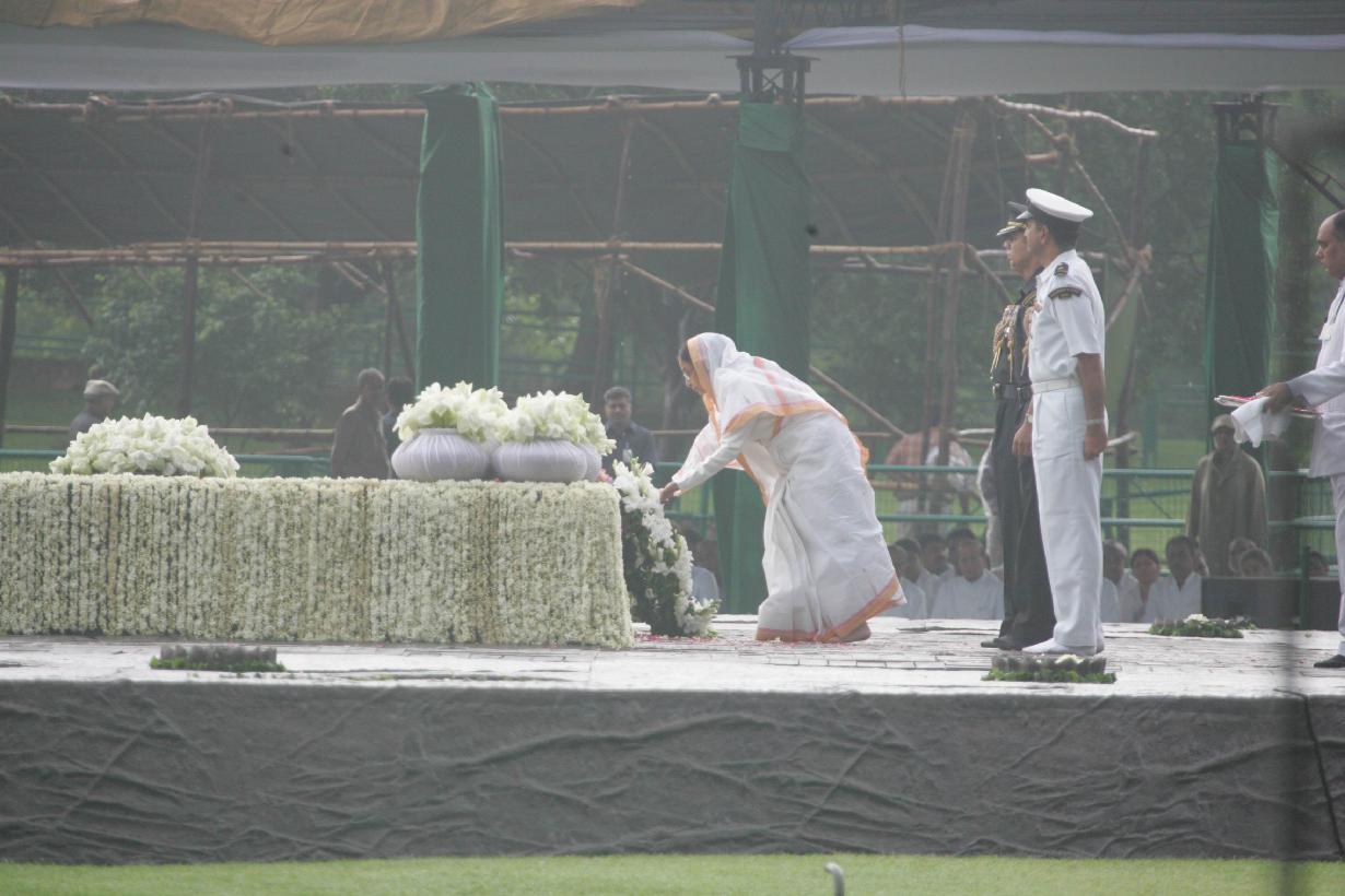 | Caption: | The President of India, Smt Pratibha Devisingh Patil paying homage at the Samadhi of the Former Prime Minister of India, Late Shri Rajiv Gandhi at Vir Bhumi in New Delhi on May 21, 2008 |