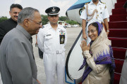 | Caption: | The President of India, Smt Pratibha Devisingh Patil before departure from Kanpur Airport in Uttar Pradesh on Sep 24, 2008 |
