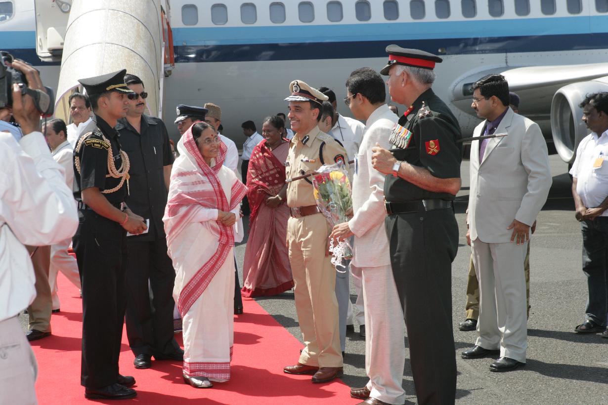 | Caption: | The President of India, Smt Pratibha Devisingh Patil arriving at Nagpur Airport in Maharashtra on Oct 13, 2007 |