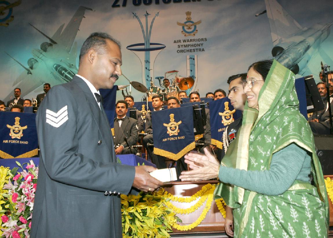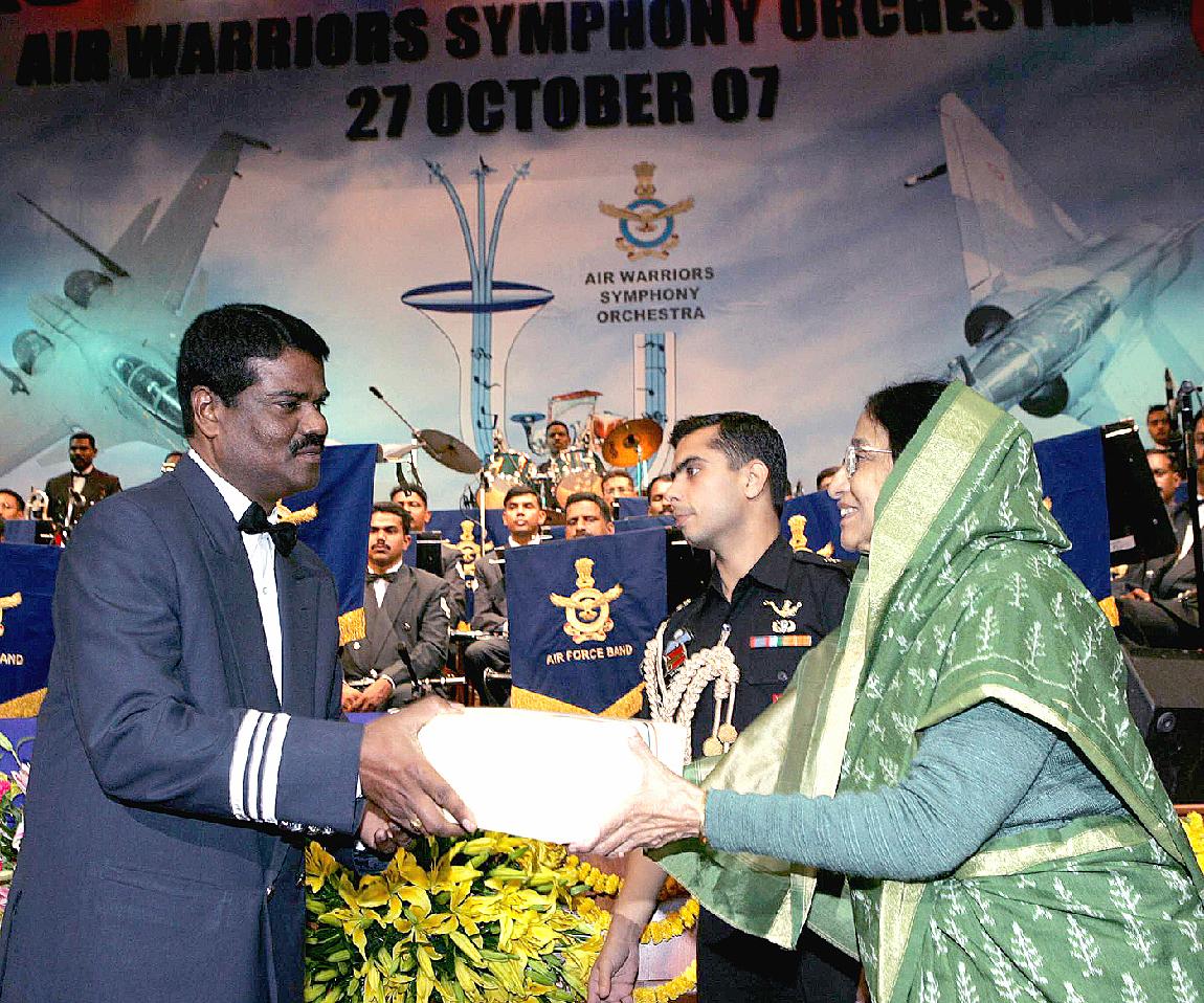 | Caption: | The President of India, Smt Pratibha Devisingh Patil witnessing a Performance by the Air Warriors Symphony Orchestra at Rashtrapati Bhavan Auditorium in New Delhi on Oct 27, 2007 |