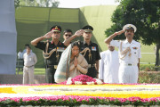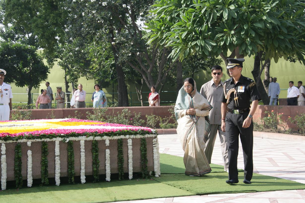 | Caption: | The President of India, Smt Pratibha Devisingh Patil paying homage at the Samadhi of the Former Prime Minister of India, Late Shri Lal Bahadur Shastri on the occasion of his 103rd Birth Anniversary at Vijay Ghat in New Delhi on Oct 02, 2007 |