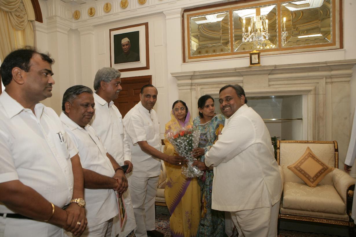 | Caption: | The President of India, Smt Pratibha Devisingh Patil with MOS for Home Affairs, Shri Sriprakash Jaiswal alongwith the Member Delegation from All India Agarsen Samaj at Committee Room of Rashtrapati Bhavan in New Delhi on Oct 04, 2007 |