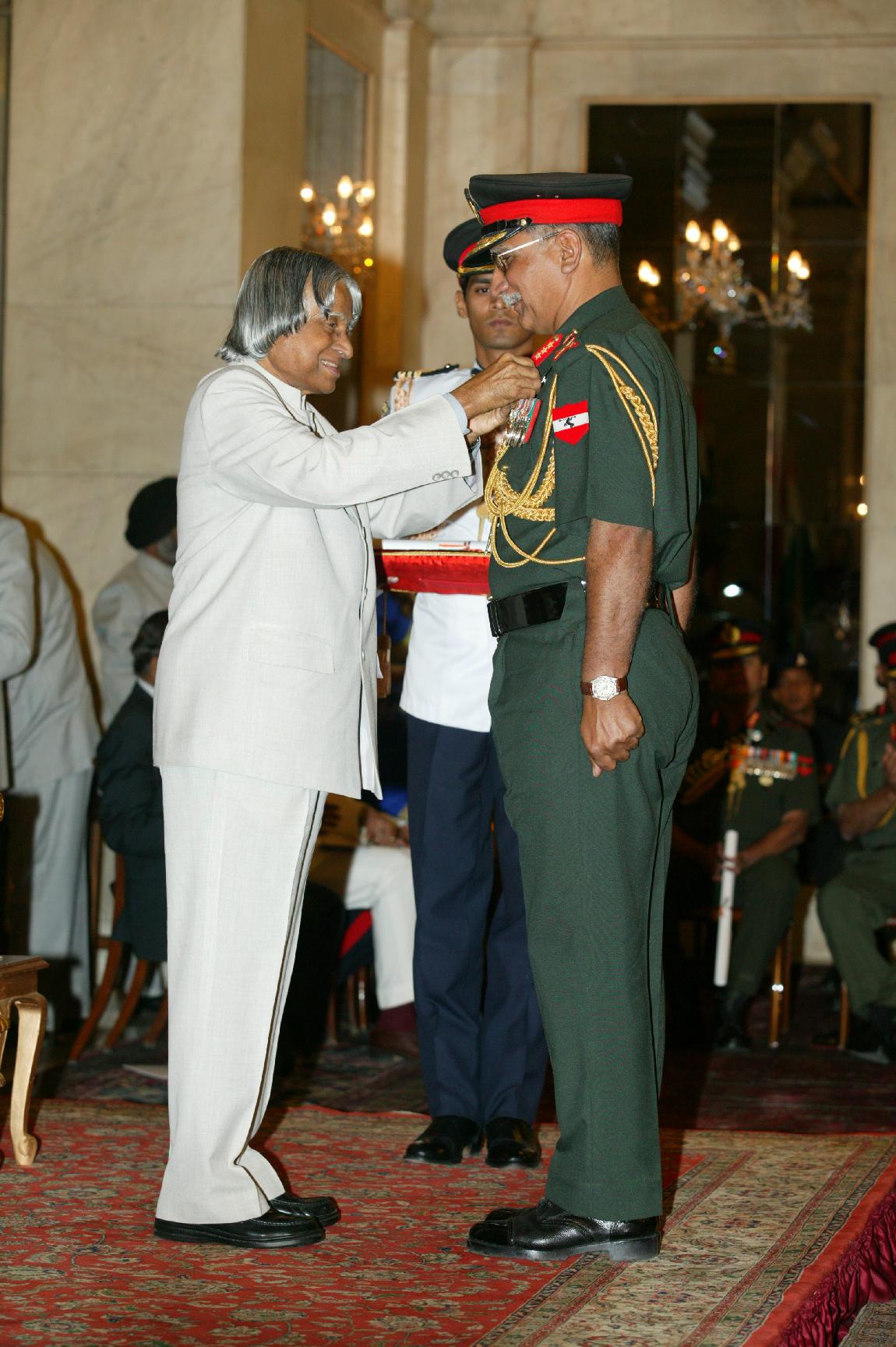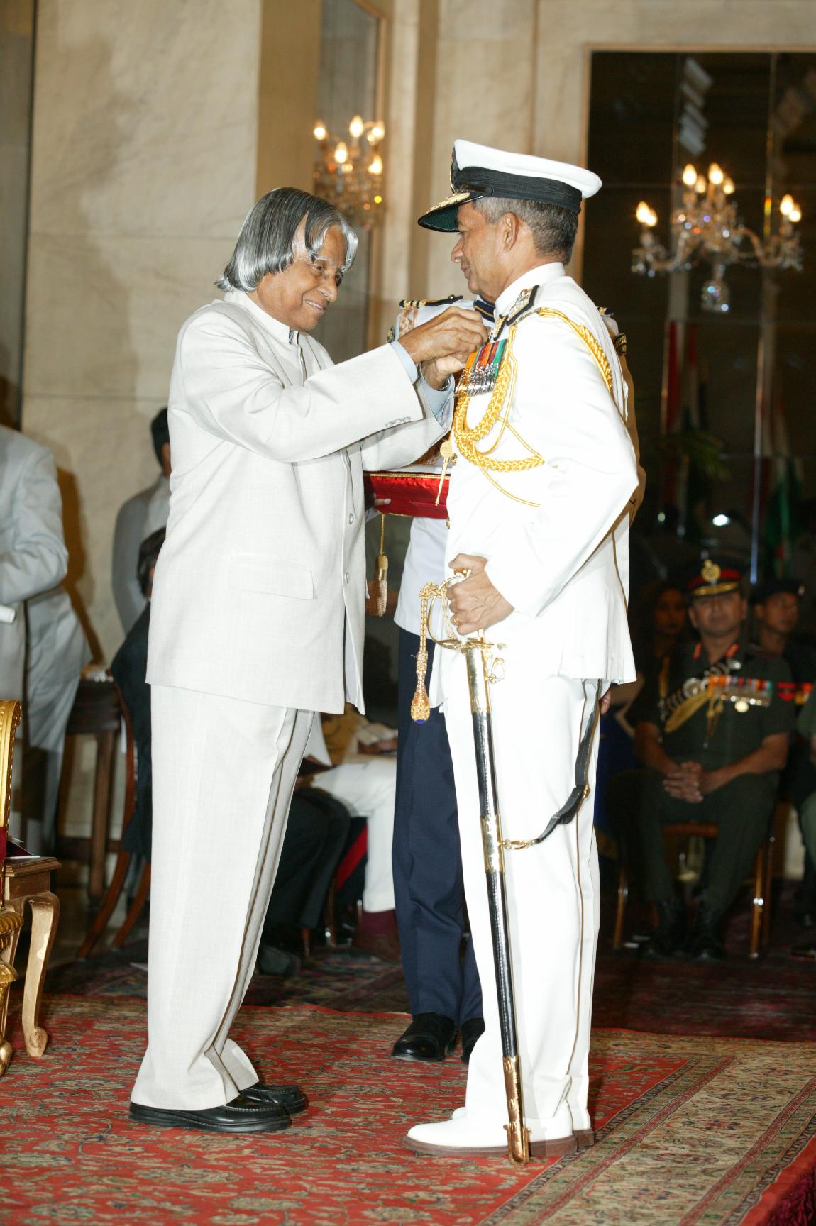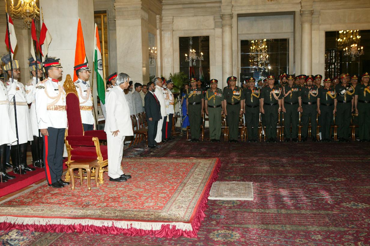 | Caption: | The President of India, Dr A P J Abdul Kalam presenting the Defence Investiture-ll at the Ashok Hall at Rashtrapati Bhavan in New Delhi on April 19, 2005 |