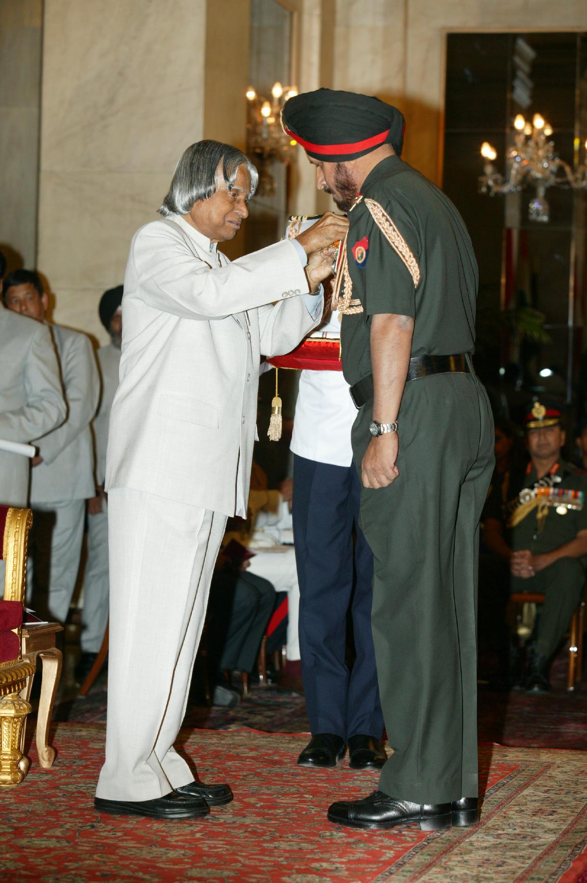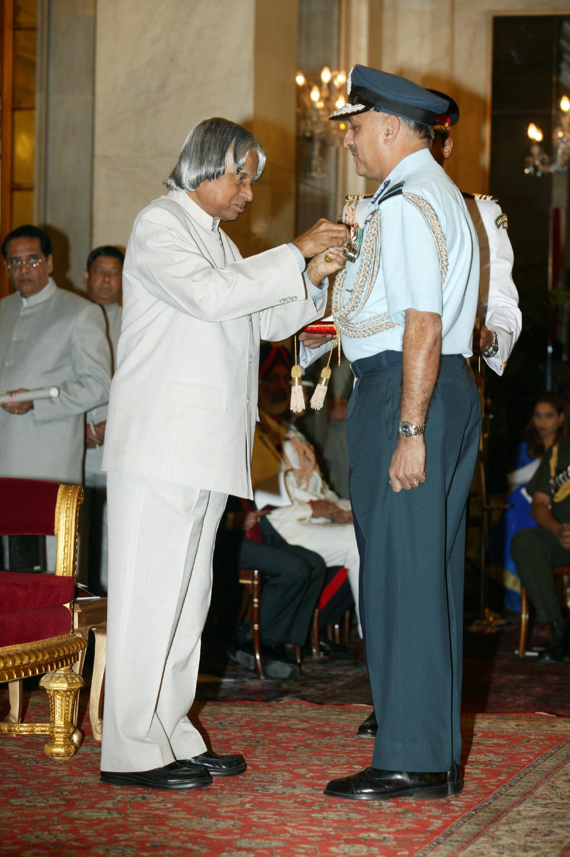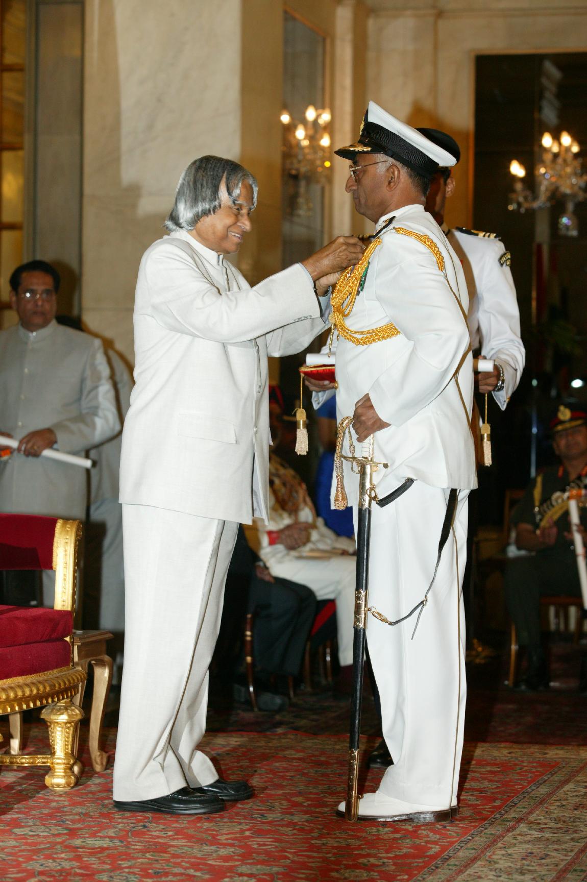 | Caption: | The President of India, Dr A P J Abdul Kalam presenting the Defence Investiture-ll at the Ashok Hall at Rashtrapati Bhavan in New Delhi on April 19, 2005 |