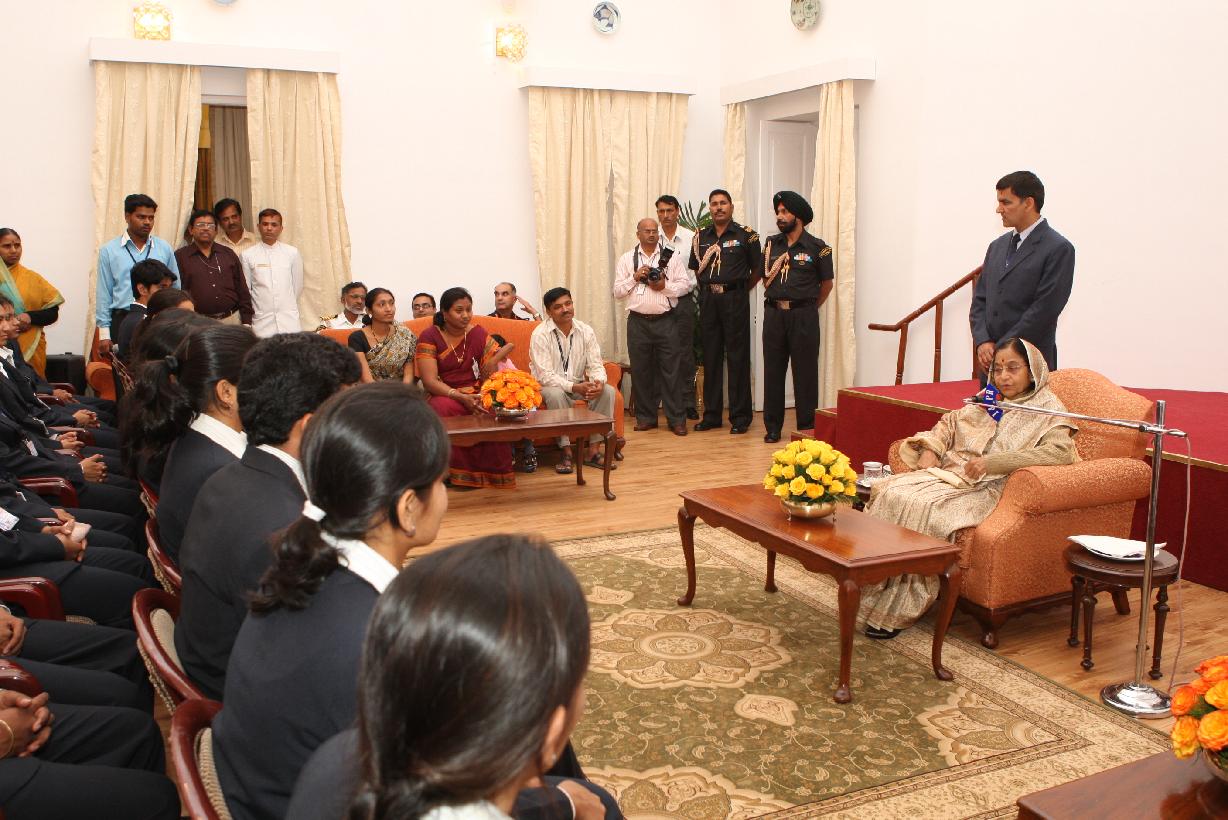 | Caption: | The President of India, Smt Pratibha Devisingh Patil interacting with the Delegation from Jalgaon at Hyderabad in Andhra Pradesh on Jan 11, 2009 |