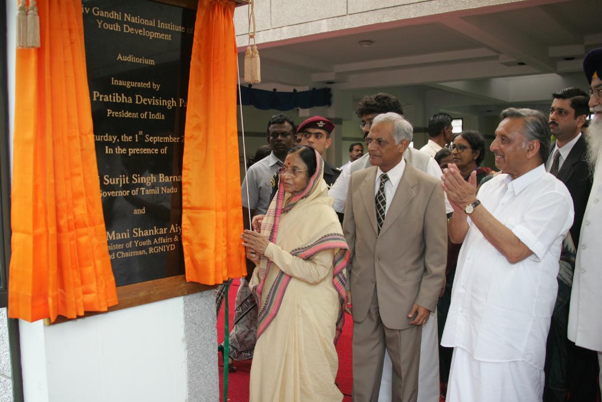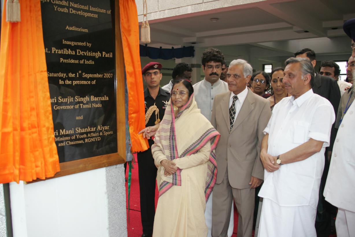 | Caption: | The President of India, Smt Pratibha Devisingh Patil inaugurating the Auditorium of the Rajiv Gandhi National Institute of Youth Development at Sriperumbudur in Tamil Nadu on Sep 01, 2007 |