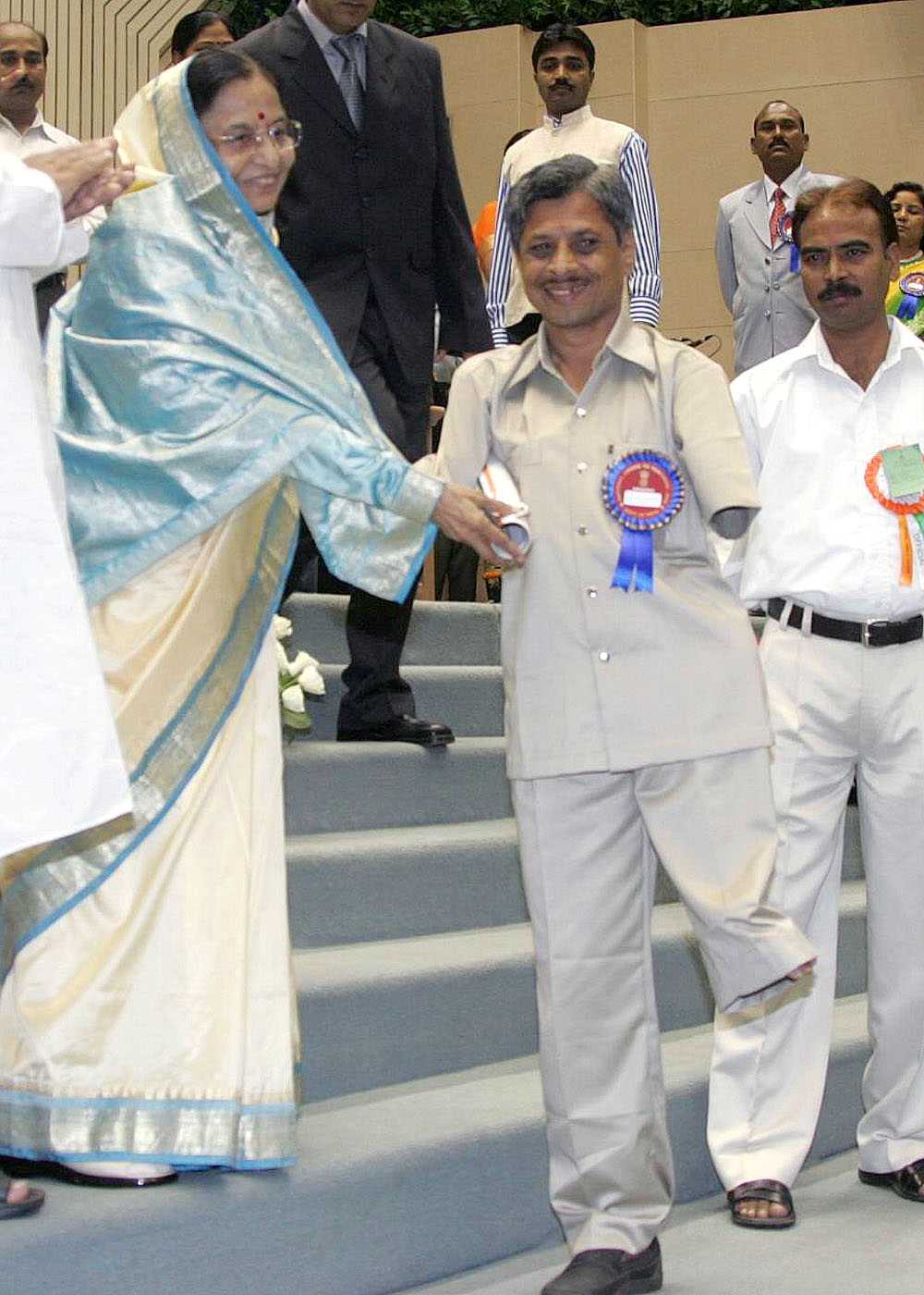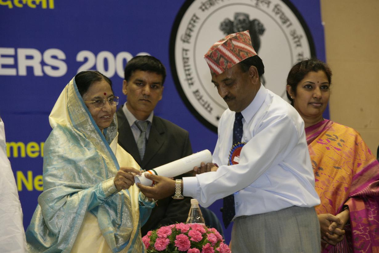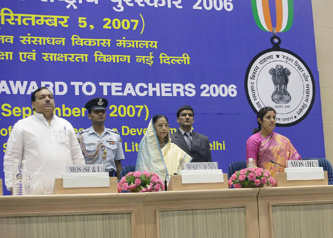 | Caption: | The President of India, Smt Pratibha Devisingh Patil presenting the National Awards for Teachers-2006 at Vigyan Bhavan in New Delhi on Sep 05, 2007 |